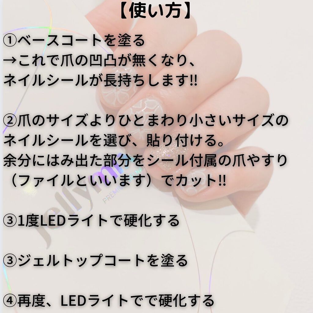 | ネイルシールランキング第54位 | ネイルもちもよく仕上がりがキレイ♡100%ジェルでできた、硬化させるネイルシール。 | 詳細を見る | |