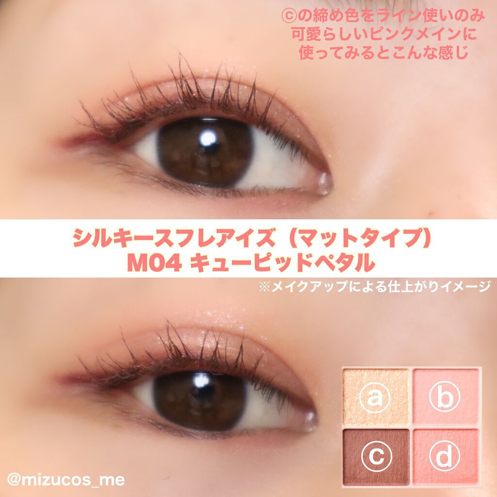 透明感溢れる4色構成のアイシャドウが肌なじみが良く艶っとした仕上がりで使うとはまってしまいます😍♥️♥️ お値段も¥825とお試ししやすい価格になっているので是非ぜひcheckしてみてくださいね!!😌 透けるラメ×透けるマットの組み合わせがとにかく可愛くてオシャレで1度使うと一軍アイシャドウの仲間入りになります✨✨
