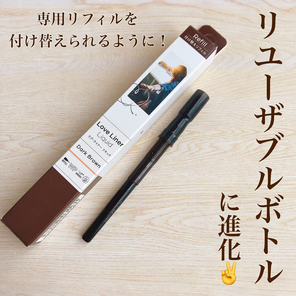 - 「0.1mmの極細毛の筆先」、「手ブレを防ぐ重さのあるアルミボトル」、「ウォータープルーフ&スマッジプルーフ」、「ぬるま湯で簡単オフ」という特長は従来品から引き継ぎ、新たに3つの特長をプラスしました。 1.ラブ・ライナー史上初!つけ替えができて繰り返し使える「リユーザブルボトル」に進化 筆とインクがセットになった専用リフィルをつけ替えることで、お気に入りのボトルを繰り返し使うことができます。 2.ラブ・ライナーだけの黄金比率。職人の手もみブレンドでできたオリジナル職人筆 筆づくり発祥の地、奈良の筆職人の手もみの技によるラブ・ライナーだけのオリジナル職人筆を採用。新素材をラブ・ライナー独自の比率でブレンドし、まぶたに最もふさわしいやわらかさとコシのバランスで、ラブ・ライナー史上最高の描き心地を実現。 3.10種類の美容成分配合※ 従来品に配合していた5種類の美容成分に加え、まつげケアを叶える美容成分を新規配合。合計10種類の美容成分※でメイクするたびに美しい目元へ。 ※保湿成分のこと