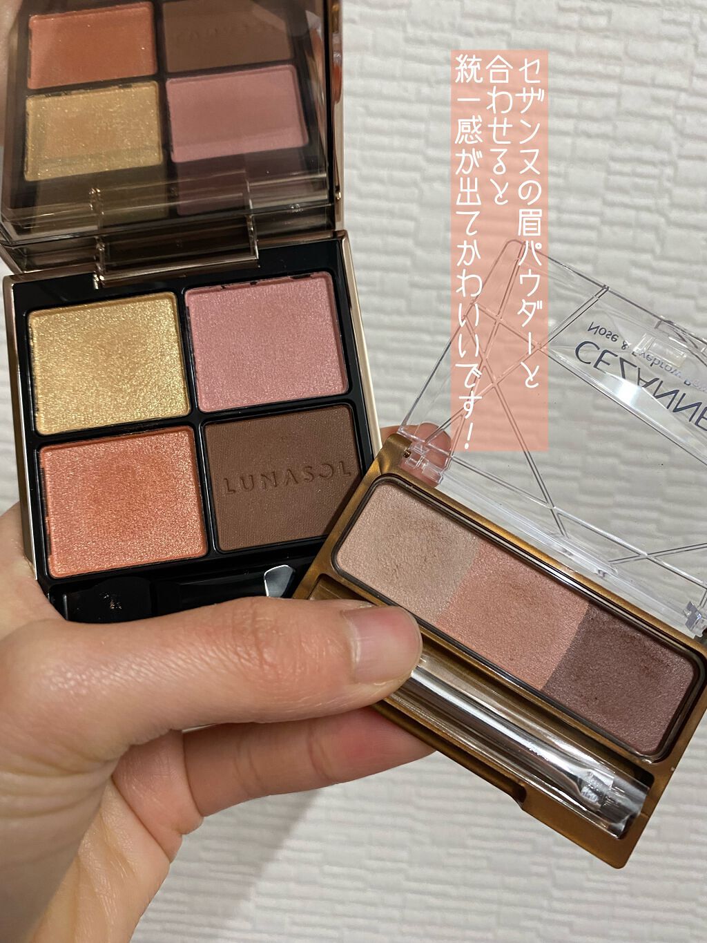 LUNASOL使いたいわ~!って思って出てきた☺️ アイカラーレーション11かわいい 締め色まで透け感があって優しい。 目元の立体感や艶感を出してくれるパレット!こういうのも好き♡ 最近はガッツリ濃いよりふんわりメイクばかりしてる😂