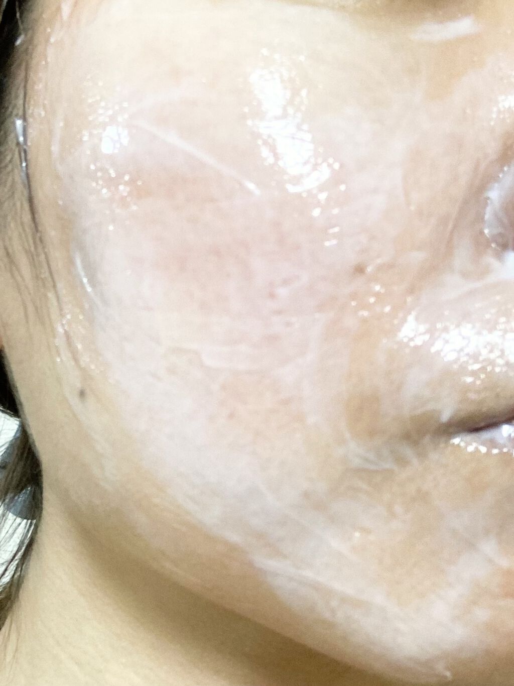 乾燥肌のため普段、クリーム系のパックを使うことが多いので、こちらはさっぱり&しっとりな使用感だと感じました。 透明なジェルっぽい美容液がたっぷりで、ガーゼ?のようなシートで顔からずれ落ちることがありません。 パック後は水分がしっかりチャージされた感じです。乾燥肌の私でも十分の保湿力◎ 何よりお安い(DHOLICで一枚66円)し、刺激も無いので普段使いにぴったりです。 美白効果はそこまで感じられませんでした。 これ一つでものすごい肌が変わった!というような感動は無かったので星四つ⭐️