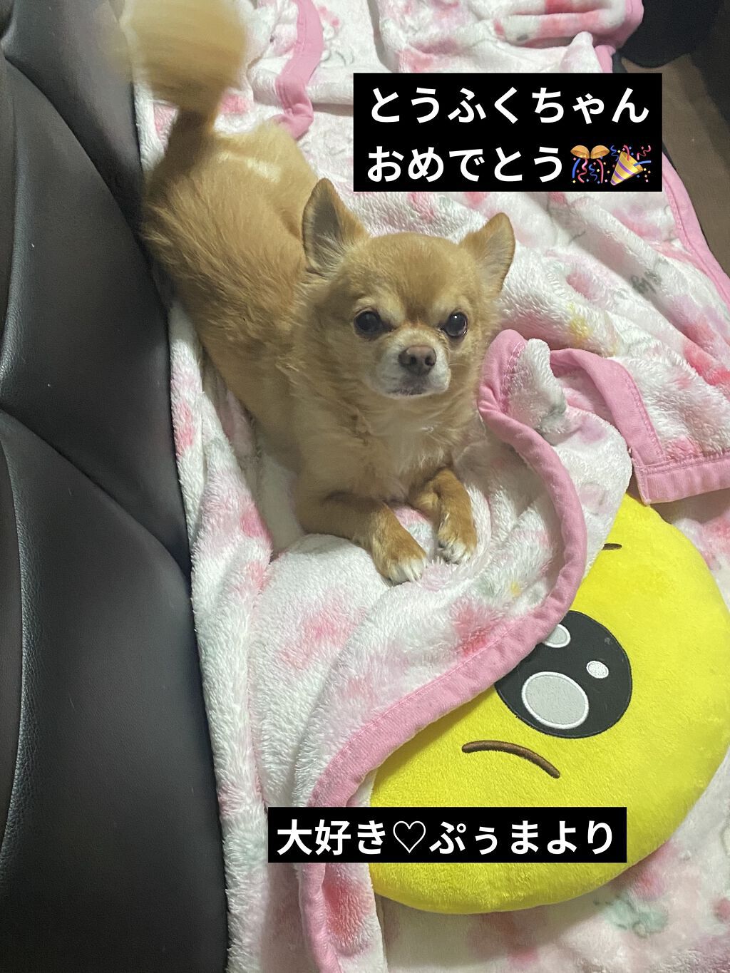 ぷぅぴぃ💜💗ちゃんおはよー😄❣️ とうふくさん❤️お誕生日おめでとうございます🎂🎉 3人ともきれい😍💜 チワワズも相変わらず可愛すぎる😆