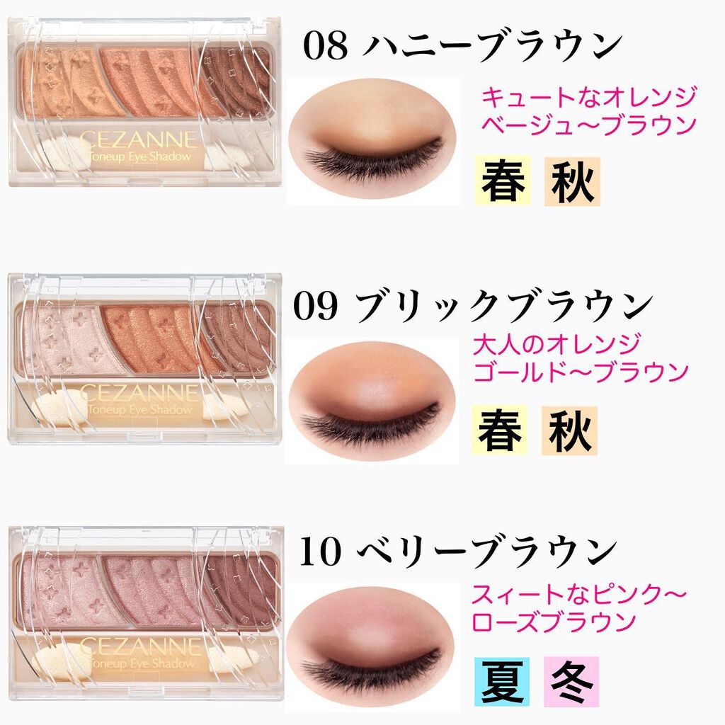 セザンヌの人気シリーズを全色パーソナルカラー分析レビューしました🙌🏻どれも明るめで春夏の方は選び放題!ブルベ冬の私が使うならベージュトーンの05かなあと思います🤔ベージュトーンとビタートーンはラメが華やかなので、濃い色が得意な方でもアイライン...