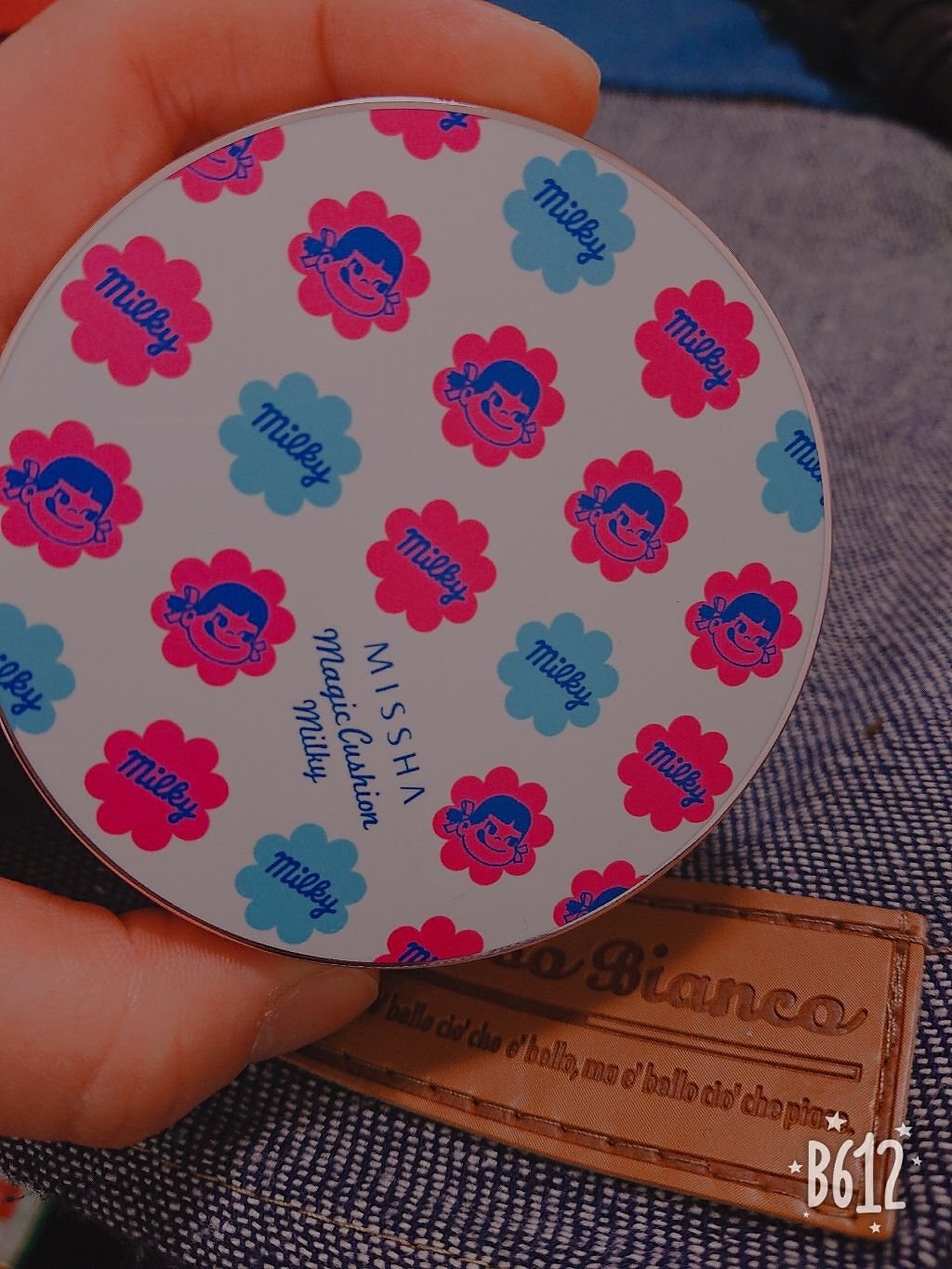 MISSHAクッションベースミルキーコラボ(限定)やっと見つけられました!!ラスト1個でした!とにかくパッケージが可愛い😆ミルキーコラボということでなかのパフもミルキー柄!もったいないからふつうのMISSHAのパフに替えようかな……🤔💭下地と...