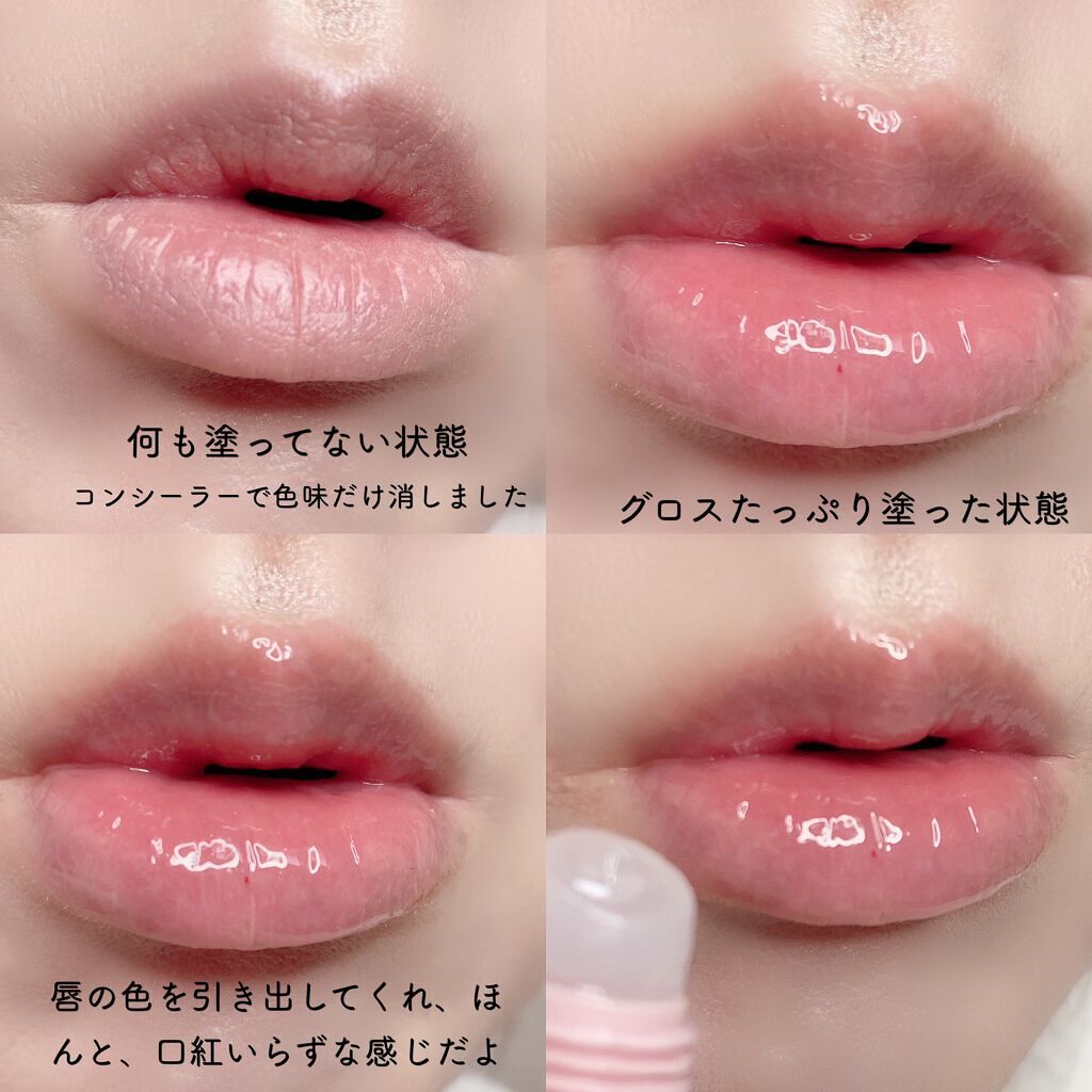 まず見た目が可愛くって、そして思ってたよりもかなりのミニサイズ・・⭕️ シアータイプのリップでラメがチラチラ見える控えめの発色のリップだょ✨✨ ティッシュオフしてもほんのり色が残ってくれて、ラメ感とツヤもほんのり残るのね・・✨✨ 程よい血色感が続いてくれて、つけ心地としては圧迫感が全くなくって、艶々瑞々しい感じ🥰 潤いもチャージできて、乾燥知らずなのもいい⭕️