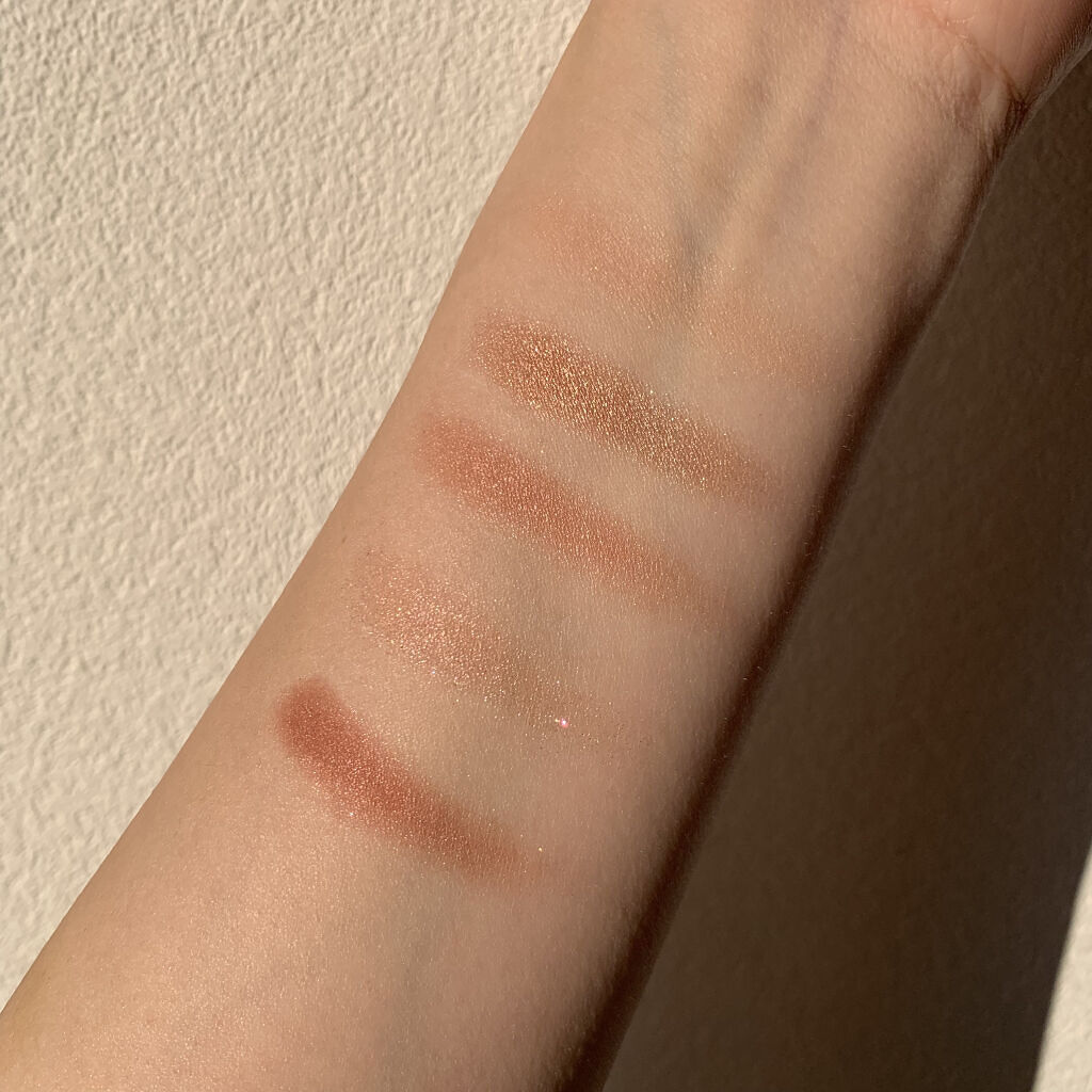 - <ウォーム> 合成フルオロフロゴパイト、タルク、セルロース、シリカ、リンゴ酸ジイソステアリル、窒化ホウ素、ジメチコン、パルミチン酸エチルヘキシル、ホウケイ酸(Ca/Na)、ホウケイ酸(Ca/Al)、ダイマージリノール酸ダイマージリノレイルビス(ベヘニル/イソステアリル/フィトステリル)、カプリリルグリコール、(VP/ヘキサデセン)コポリマー、ソルビン酸K、クロルフェネシン、ミリスチン酸Mg、ケイ酸Mg、ジミリスチン酸Al、イソステアリン酸ソルビタン、ステアリン酸Mg、酢酸トコフェロール、酸化スズ、トリエトキシカプリリルシラン、ハイドロゲンジメチコン、トウロウソウ葉エキス、マルトデキストリン、トコフェロール、マイカ、酸化鉄、酸化チタン、オキシ塩化ビスマス、カルミン、グンジョウ <ライト> 合成フルオロフロゴパイト、タルク、リンゴ酸ジイソステアリル、シリカ、ナイロン-12、ポリメタクリル酸メチル、窒化ホウ素、ジメチコン、パルミチン酸エチルヘキシル、ミネラルオイル、(VP/ヘキサデセン)コポリマー、マイクロクリスタリンワックス、メチルパラベン、クロルフェネシン、パラフィン、水酸化Al、ジミリスチン酸Al、ミリスチン酸Mg、プロピルパラベン、イソステアリン酸ソルビタン、酢酸トコフェロール、トリエトキシカプリリルシラン、酸化スズ、ハイドロゲンジメチコン、トウロウソウ葉エキス、マルトデキストリン、ステアリン酸、マイカ、酸化鉄、酸化チタン、Al、オキシ塩化ビスマス、カルミン、グンジョウ、コンジョウ <ミディアム> 合成フルオロフロゴパイト、タルク、シリカ、ナイロン-12、リンゴ酸ジイソステアリル、ポリメタクリル酸メチル、窒化ホウ素、ジメチコン、パルミチン酸エチルヘキシル、ミネラルオイル、ハイドロゲンジメチコン、メチルパラベン、マイクロクリスタリンワックス、クロルフェネシン、(VP/ヘキサデセン)コポリマー、パラフィン、プロピルパラベン、ジミリスチン酸Al、ミリスチン酸Mg、イソステアリン酸ソルビタン、トリエトキシカプリリルシラン、酢酸トコフェロール、トウロウソウ葉エキス、水酸化Al、マルトデキストリン、ステアリン酸、酸化鉄、マイカ、酸化チタン、グンジョウ <テンダー> 合成フルオロフロゴパイト、タルク、セルロース、ホウケイ酸(Ca/Na)、シリカ、窒化ホウ素、リンゴ酸ジイソステアリル、トリイソステアリン酸ポリグリセリル-2、パルミチン酸エチルヘキシル、ヒマシ油、カプリリルグリコール、ソルビン酸K、クロルフェネシン、オクチルドデカノール、サラソウジュ樹脂、水添ヒマシ油、ジミリスチン酸Al、酸化スズ、ステアリン酸Mg、酢酸トコフェロール、酸化鉄、マイカ、酸化チタン、Al、オキシ塩化ビスマス、カルミン、グンジョウ