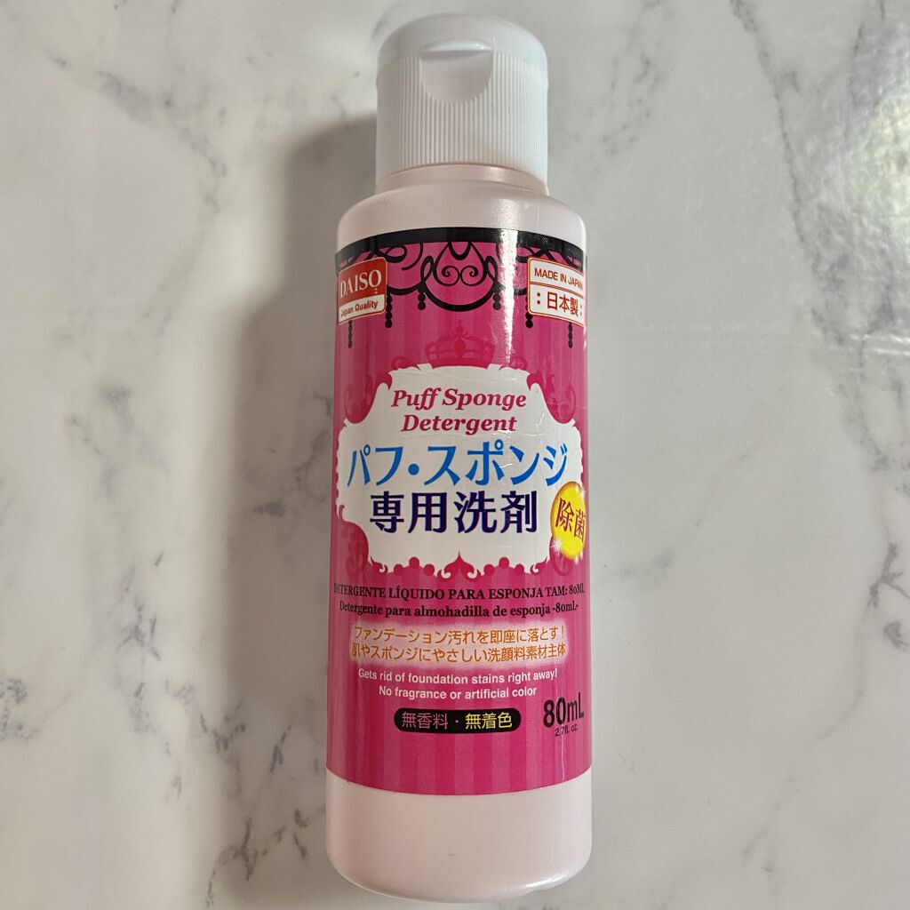 いつも中性洗剤で洗っていましたが、DAISOパフ・スポンジ専用洗剤¥110気になってはいましたが中性洗剤でも不便なかったので買わずにきていたのですが母親がかったら中性洗剤では落ちなくてもこれならすごい綺麗になる!と言われへぇーと思い購入🤣透明...