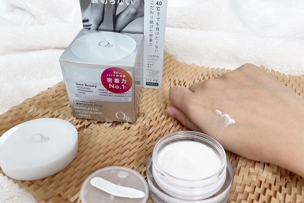 - 【医薬部外品】 目指したのは酷暑40℃対応デオドラント 20年こだわり続けた デオドラントの集大成* ニオイの悩み、裏切らない 塗りこんで、集中密着の防臭力 しっかり塗り込むクリームタイプなので、肌に密着し、白残りなし! 汗を抑え、ニオイの原因を殺菌し、ワキガなどの深刻な悩みに。日々の気になる体臭まで防ぎます。 *QB薬用デオドラントシリーズにおいて