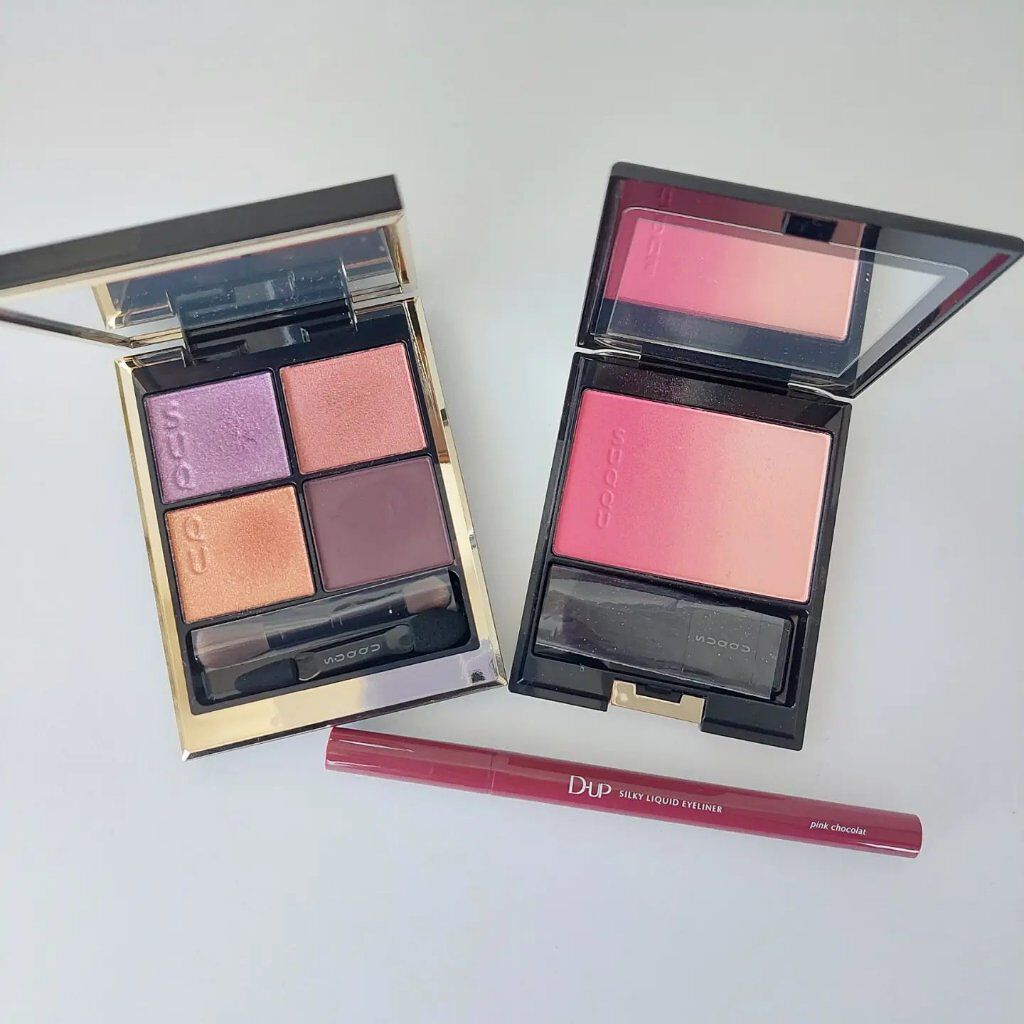 ベースに仕込むことで、パレットのカラーたちを引き立ててくれて発色がきれいに出る…!感動♡ 私の瞼ではピンクみが強めに出るんだけど、そのおかげでコートカラーのラメと締め色が映えて美しい🥹🩷 これ、136のパレットにも仕込んでみたい!!