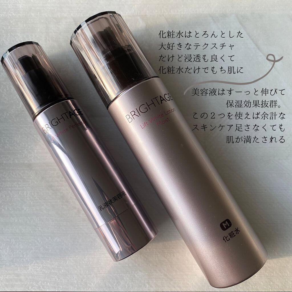 ブライトエイジは製薬会社である第一三共ヘルスケアが開発したスキンケアシリーズでエイジングケア*¹したい方に。 薬用有効成分としてトラネキサム酸とグリチルリチン酸2KがWで配合されており様々な年齢肌*²悩みの根本原因にアプローチしてくれるそう 高保湿設計なので乾燥を感じやすい冬にもぴったりな使用感美容液と乳液がこちら1つで済むのでシンプルケアをしたい時にも。