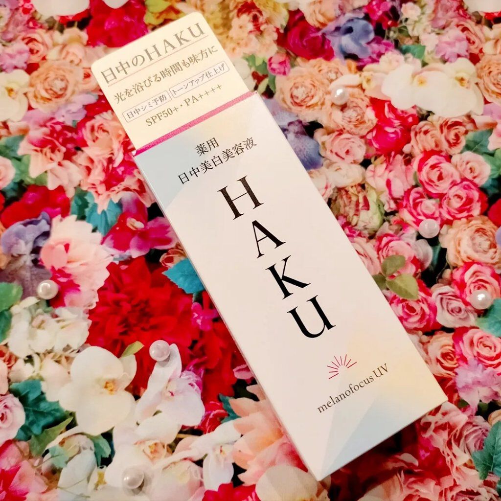 - 販売名「メラノフォーカスUV」 SPF50+・PA++++ 日中のHAKU。光を浴びる時間も味方に、日中だからできる美白ケアのアプローチ。 シミ予防研究の先端技術を搭載し、日中ならではの美白ケアを可能にした、薬用日中美白美容液です。光を浴びる時間も味方にして、明るく透明感のある肌に導きます。 ○2種の美白有効成分を肌の奥まで届け効かせる。 ○日中の肌環境に着目し、Wデイエフェクターを配合。うるおいを与え届ける。 〇ファインレッドパールαが効果的に光を放ち、シミや色ムラを目立たせない。トーンアップ効果で、明るく透明感のある仕上がり。 〇みずみずしい美容液がスーッとなじむ。化粧下地としても使える。 ○無香料・アレルギーテスト済み・ニキビのもとになりにくい処方。 (全てのかたにアレルギーが起きない、ニキビができないというわけではありません)。