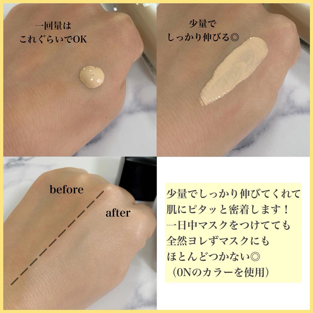 30時間 全瞬間ビジュがいい。』のコンセプト通り 崩れにくさがすごい!! 薄膜で崩れにくいのが特徴だけど しっかり毛穴やくすみもカバーしてくれる! 隠したいなと思うところは ポンポン重ね塗りするとしっかりカバーされるけど それでも崩れにくい👏🏻 ツヤ系というよりセミマットよりな仕上がりなので 乾燥が気になる人はしっかりめの保湿がおすすめ♡ わたしはややピンクみのある C20がお気に入りカラー☝🏻 ͗ ͗
