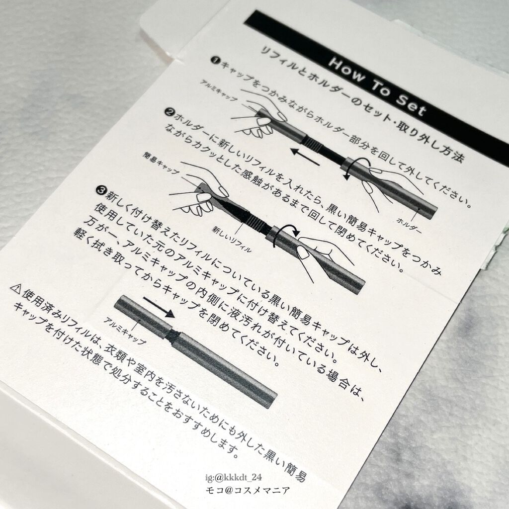 - 「0.1mmの極細毛の筆先」、「手ブレを防ぐ重さのあるアルミボトル」、「ウォータープルーフ&スマッジプルーフ」、「ぬるま湯で簡単オフ」という特長は従来品から引き継ぎ、新たに3つの特長をプラスしました。 1.ラブ・ライナー史上初!つけ替えができて繰り返し使える「リユーザブルボトル」に進化 筆とインクがセットになった専用リフィルをつけ替えることで、お気に入りのボトルを繰り返し使うことができます。 2.ラブ・ライナーだけの黄金比率。職人の手もみブレンドでできたオリジナル職人筆 筆づくり発祥の地、奈良の筆職人の手もみの技によるラブ・ライナーだけのオリジナル職人筆を採用。新素材をラブ・ライナー独自の比率でブレンドし、まぶたに最もふさわしいやわらかさとコシのバランスで、ラブ・ライナー史上最高の描き心地を実現。 3.10種類の美容成分配合※ 従来品に配合していた5種類の美容成分に加え、まつげケアを叶える美容成分を新規配合。合計10種類の美容成分※でメイクするたびに美しい目元へ。 ※保湿成分のこと