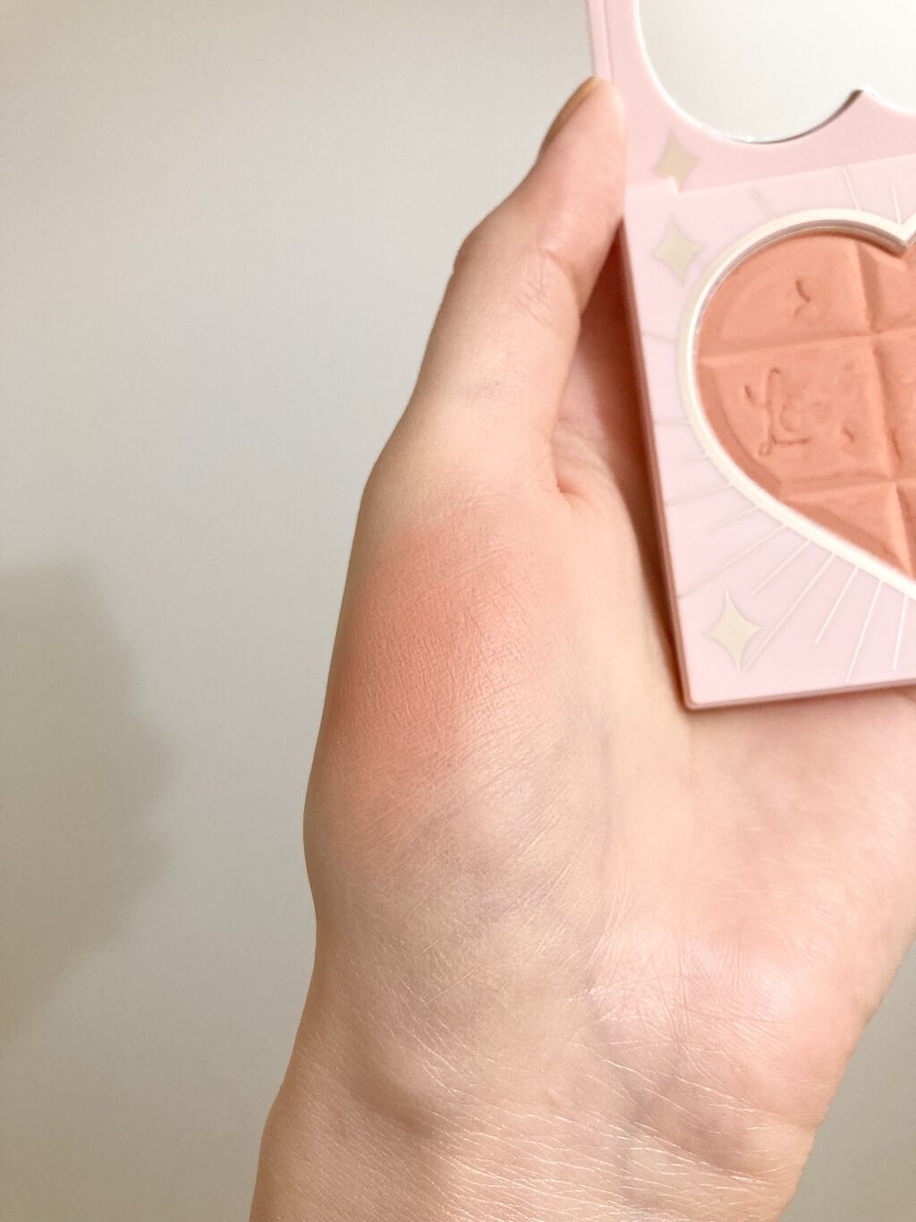 このチークは「激安!ポンポン買える!」という値段ではなく、これまではセザンヌの400円のチークや100均のものばかり買っていました。笑 まず淡めのカラーなので、つけすぎてド派手になるということがなく適当に塗るだけでいい感じに!笑 色味も肌馴染み抜群です! 特にイエベさん向きかと思いますが、ブルベさんにも合うと思います。 スウォッチですが、私の肌色だと馴染みすぎて分かりにくいので多めにつけてます!