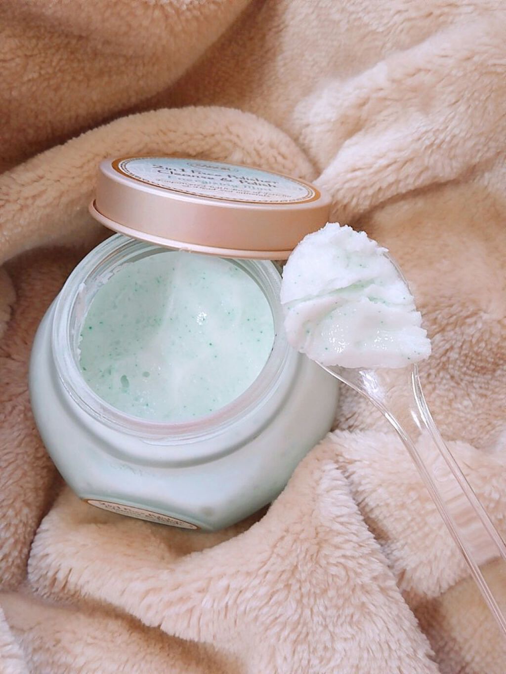 - 毛穴レスの柔肌を1品で叶える、2in1スクラブ洗顔 洗顔と角質ケアを同時に叶えるフェイス用スクラブ。ホホバ由来のスクラブ粒子*で古い角質や毛穴の汚れを取り除き、死海のミネラル**とジェリコローズ***がお肌に潤いを与えます。水分と油分のバランスを整えながら、なめらかな素肌に磨き上げます。清涼感のあるミントの香りで、すっきりしたい朝の肌におすすめです。 *ステアリン酸ステアリル、キャンデリラロウ、ホホバエステル(洗浄補助)**海塩(整肌)***アンザンジュエキス(保湿)