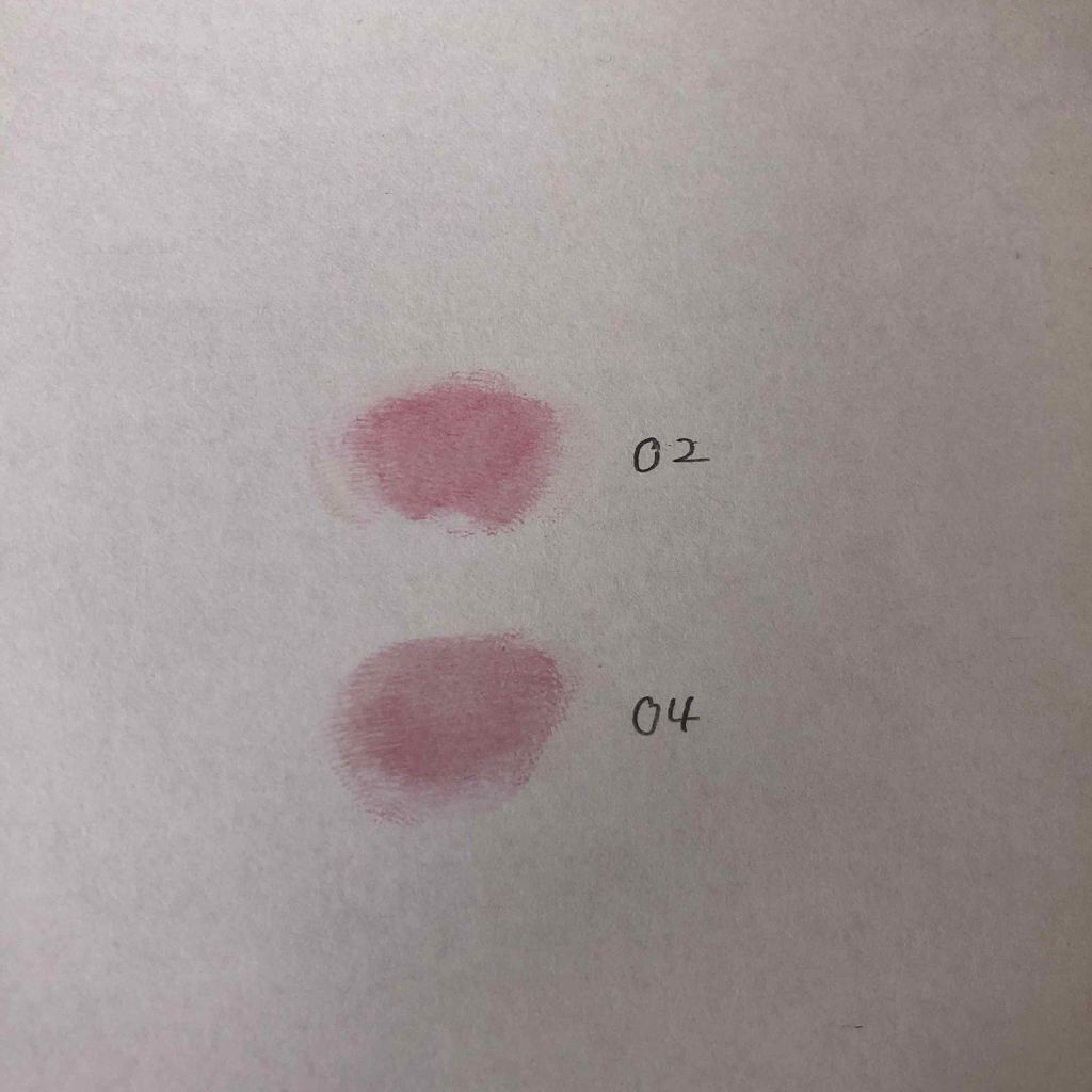 CANMAKEクリームチークティント0204左04右02です。私が1番使っているチークです。02は赤で04は塗ると透明感がでるピンクって感じに発色します。私は04の方が好みです。チークの下にパフが入っていますが、手で塗った方が発色されやすいと...