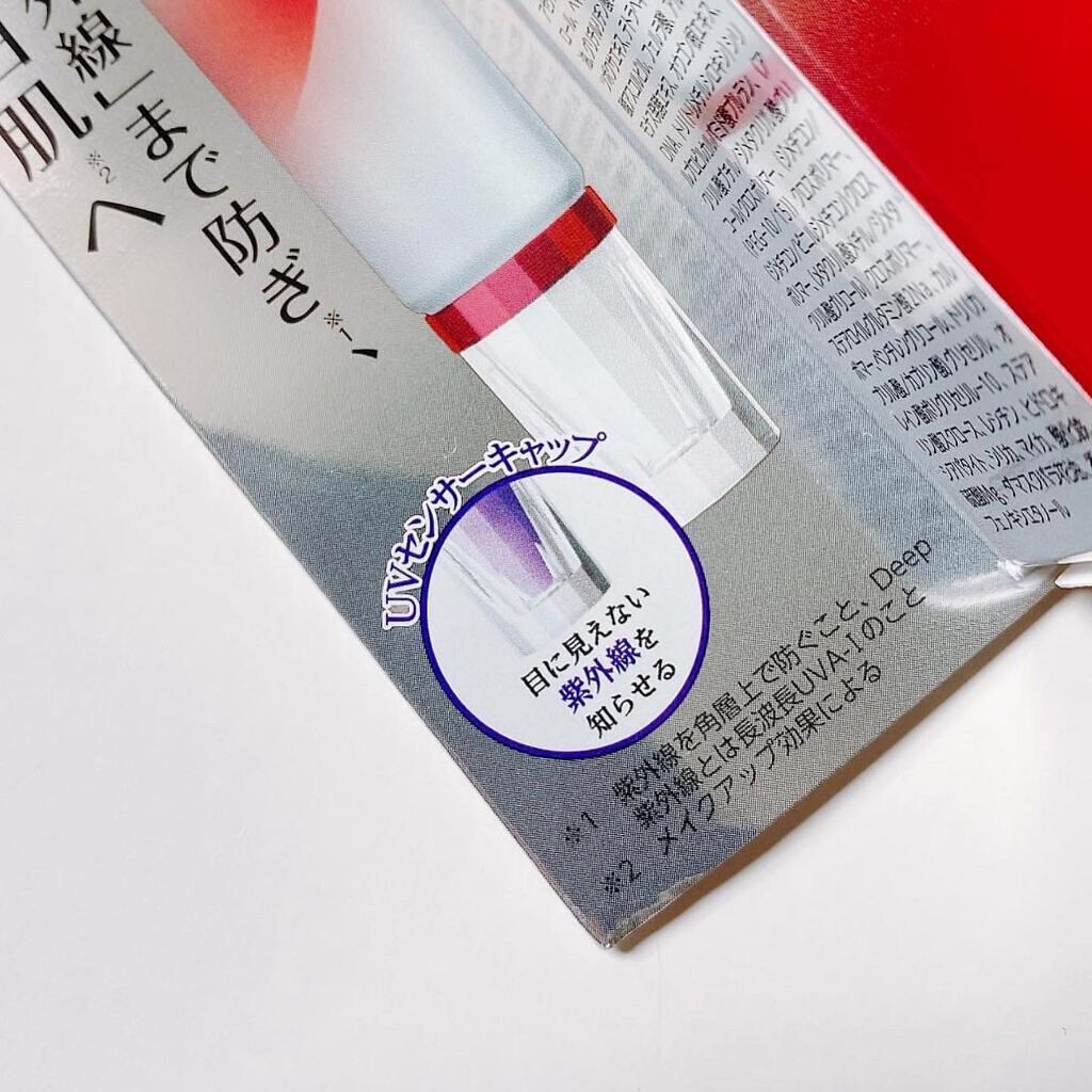 光をコントロールして肌を美しく、ワントーン明るい印象に仕上げる。 肌の奥まで侵入する「Deep紫外線」までしっかりカットするので、メイクアップ後も高いUVケアを実現。 紫外線にあたるとキャップが紫色に変化する事を知りました!自宅でも試したのですが、屋内の窓際でも鮮やかな紫に!!