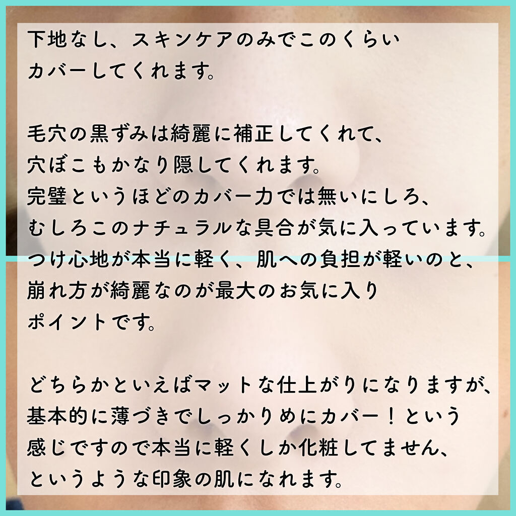 | ファンデーションランキング第144位 | 水も油分も含まないシンプル処方。肌にやさしくしっとり保湿をしながら、毛穴やくすみを自然にカバーします。 | 詳細を見る |