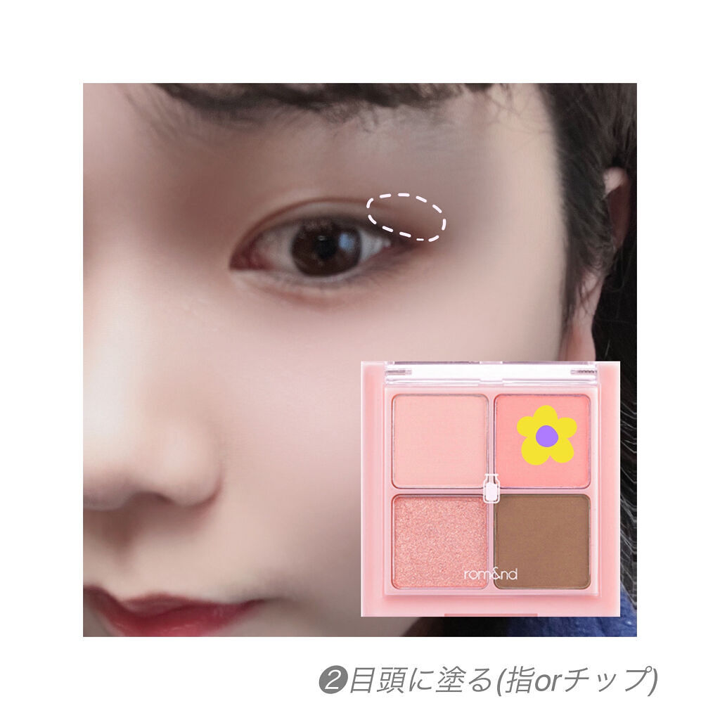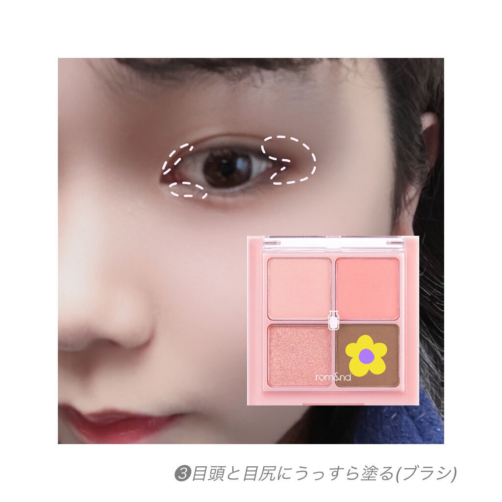 (A’pieu);#フルショットルーティーンアイパレット#PK01#CharmmyFlamingo※気軽にコメントしてください①一番うすい色を目全体にブラシで塗る。②右上の色を①より内側(二重幅)にブラシで塗る。③一番濃い色を目尻の方のまつ毛...