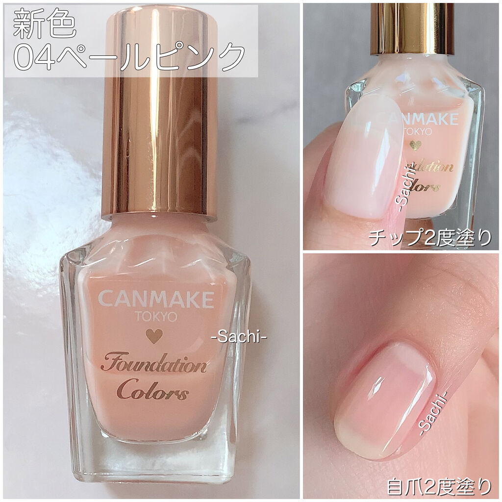396円でケアしながら垢抜け美爪完成💅🏻✨ キャンメイクファンデーションカラーズ 1度塗りから3度塗りまで徹底スウォッチ♡ ファンデーションカラーズはベースコート不要で保湿成分配合🙌🏻 爪の凸凹や色むらをカバーしてくれ時短にも👌🏻 1度塗りでほんのり色づき 2度塗りでナチュラルな発色 3度塗りでしっかりボトルカラーの発色!