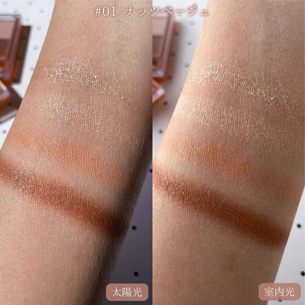 - ラメ・パール・マット3質感の4色アイシャドウ。 肌馴染みの良いベージュを基調としたカラー。ラメ・パール・マットの3質感を重ねて、自然にまぶたを強調し奥行のある大きな目元へ。 しっとり溶け込むような柔らかなパウダーなので、スルスル伸びてまぶたにピタッと密着。保湿成分(スクワラン・ホホバ種子油)配合。