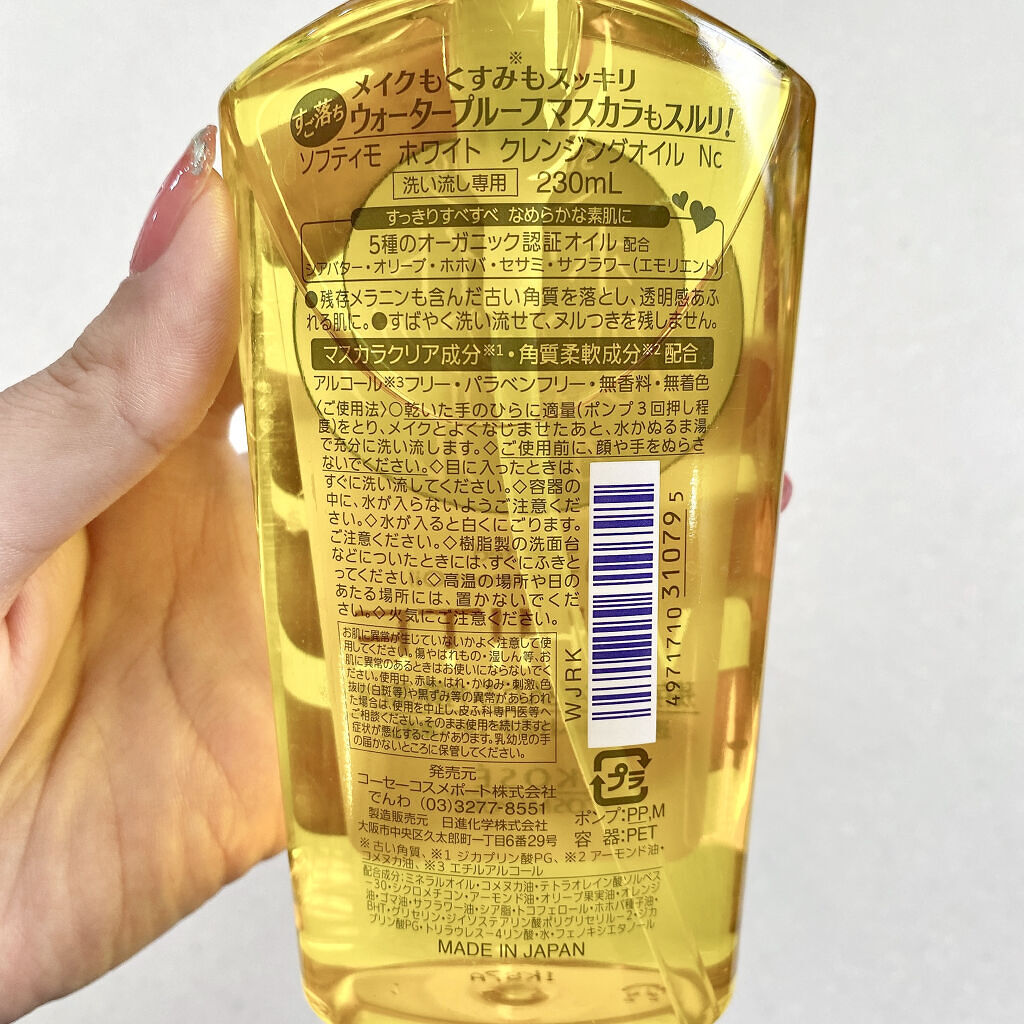MimiBeauty様を通してコーセーコスメポート様よりいただきました。ソフティモホワイトクレンジングオイル5種のオーガニック認証ボタニカルオイル(保湿)を配合したすご落ちホワイトオイル。落ちにくいメイクや残存メラニンも含んだ古い角質を落とし...