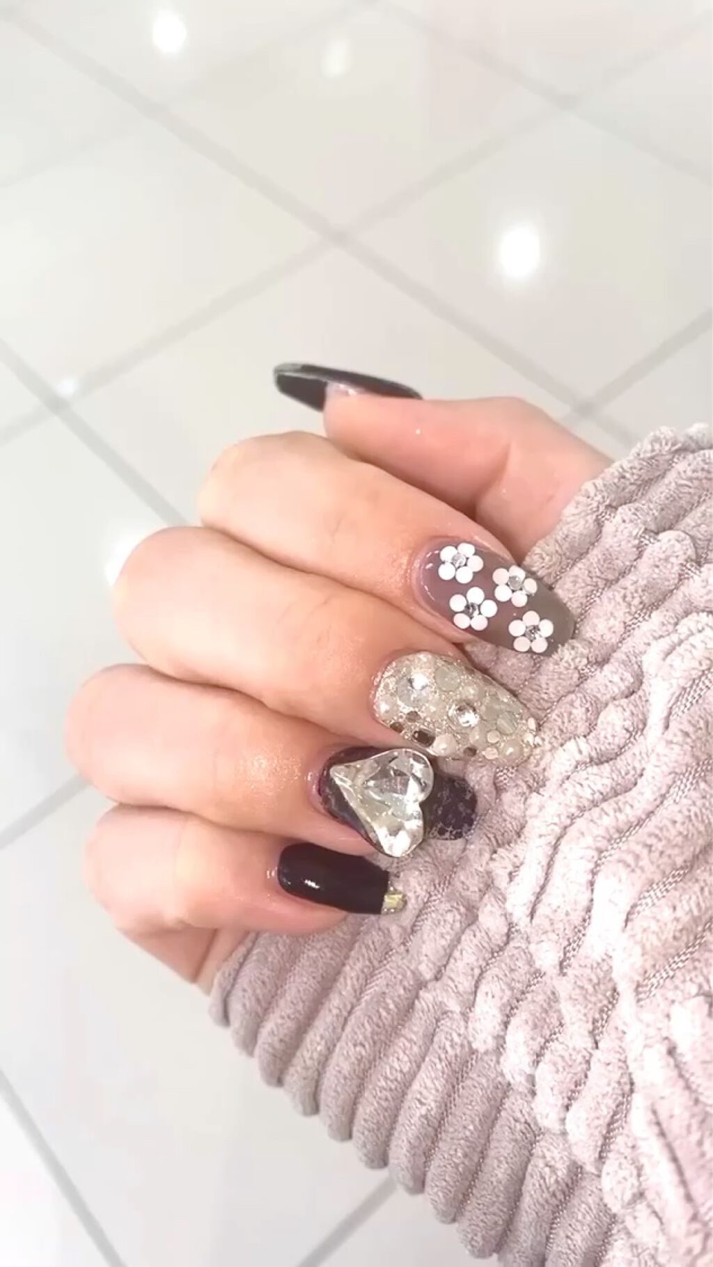 こんにちは!どれも素敵です✨ 2枚目のやつみて、やりたいデザイン決められなかったら片手ずつ違うデザインにすればいいんだ❕って気付きましたw 1番好きなのは5枚目の薬指がミラーのお花?になってるやつ!マネしてみたいです😍