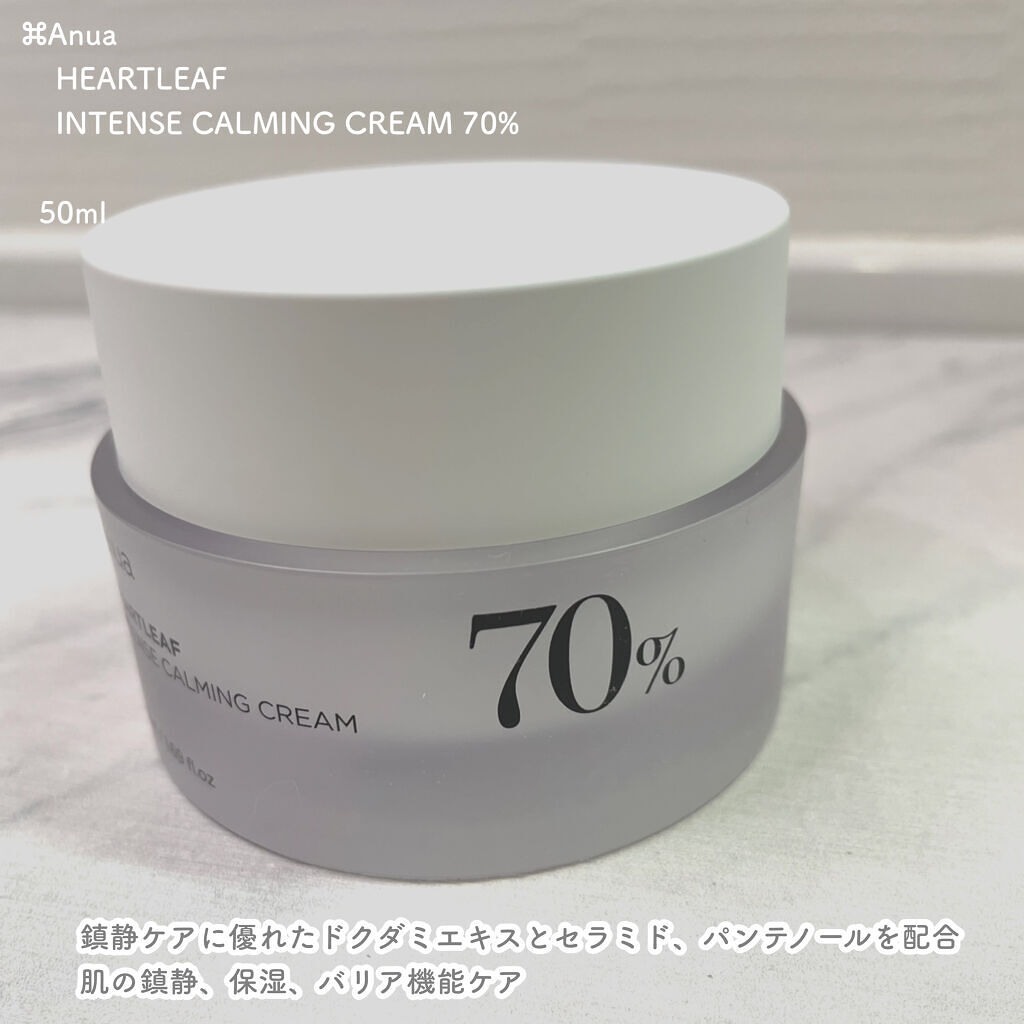 みち🫡です。🔅使い切りレビュー【Anua】ドクダミ70インテンスカーミングクリーム✔︎水分と油分のバランスを整える✔︎軽やかなバリアでうるおいを保つ✔︎ドクダミを70~80℃で抽出✔︎ドクダミの濃厚なエキスを70%配合✔︎ゆらぎ肌の方へ✔︎植...