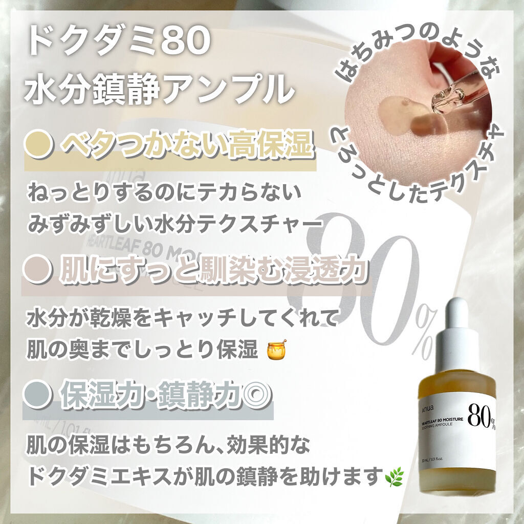 肌質に変化が🥹✨ どちらも鎮静効果抜群のドクダミエキスたっぷりでニキビや肌荒れを抑えてくれる✨ 安心して使える自然由来の肌に優しい成分をたっぷりと詰め込んだ化粧水♡ トナーだけだと保湿力が気になりますがアンプルと合わせて使う事でしっかり保湿でき水分バランスを整えてくれる💗