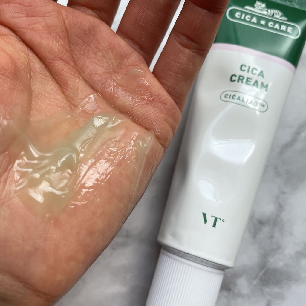 - やさしい使い心地の低刺激シカクリーム。VT独自成分のシカリオ™*配合! 肌に十分な保湿感を与え、乾燥を防ぎしっとりもちもち肌に。 クリームなのに軽くてしっとりしたテクスチャーでベタつき感やテカリが気にならない! つけた瞬間肌にスッとなじみ豊富な水分感が感じられます。 *ツボクサエキス、センテラ4Xコンプレックス(アシアチン酸、マデカッソシド、マデカシン酸、アシアチコシド):すべて整肌成分