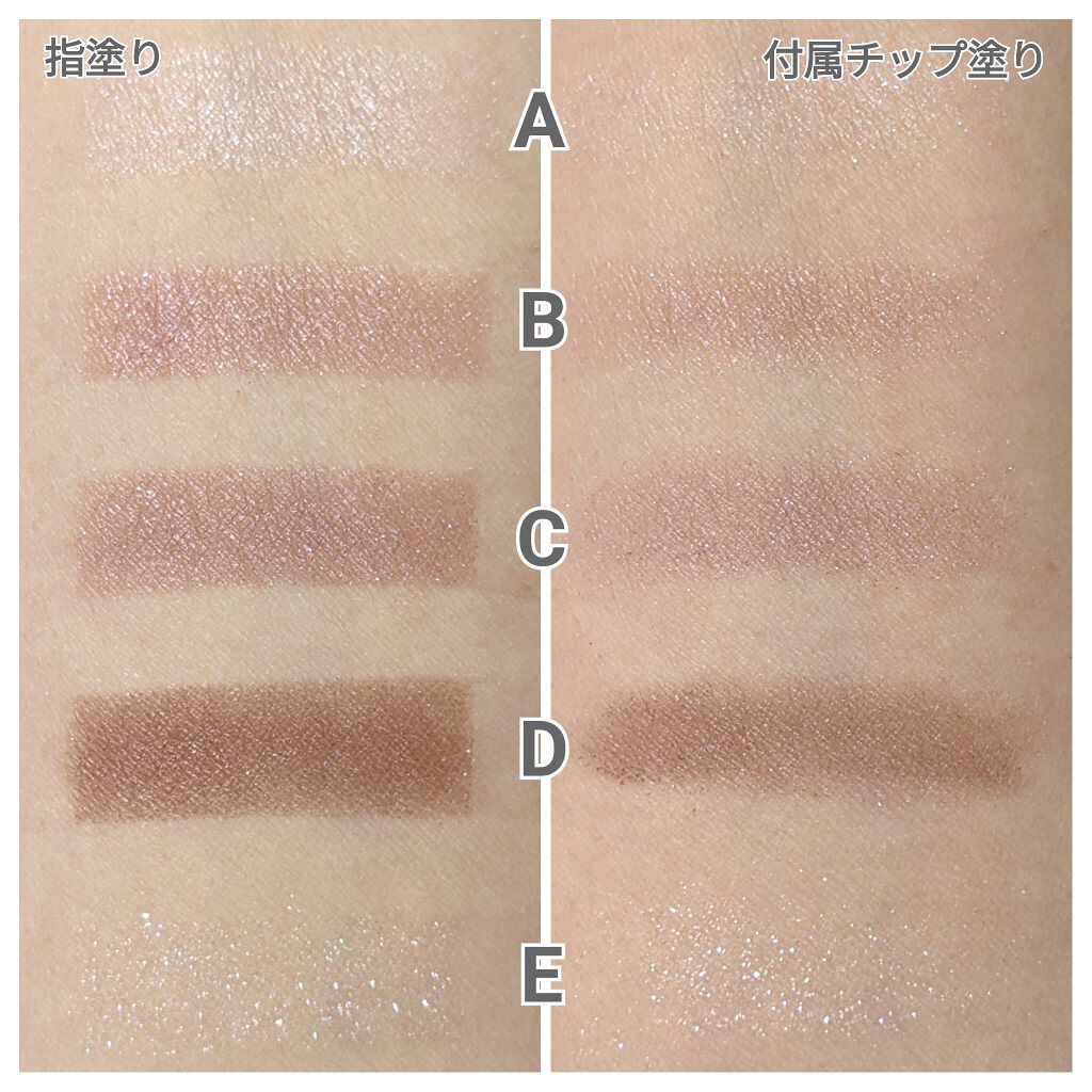- 1枚のパレットで2つのスタイルが完成! 5色の欲ばりアイシャドウ♥ メインカラーを選んで2つのスタイルが楽しめる! A→B→D でスタイル1 A→C→D でスタイル2 繊細な粉質が、しっとりとまぶたに密着して色落ちを防ぎます。 透明感のあるキラうるトッピングジュエル(繊細ラメ)は、気分によってトッピング!