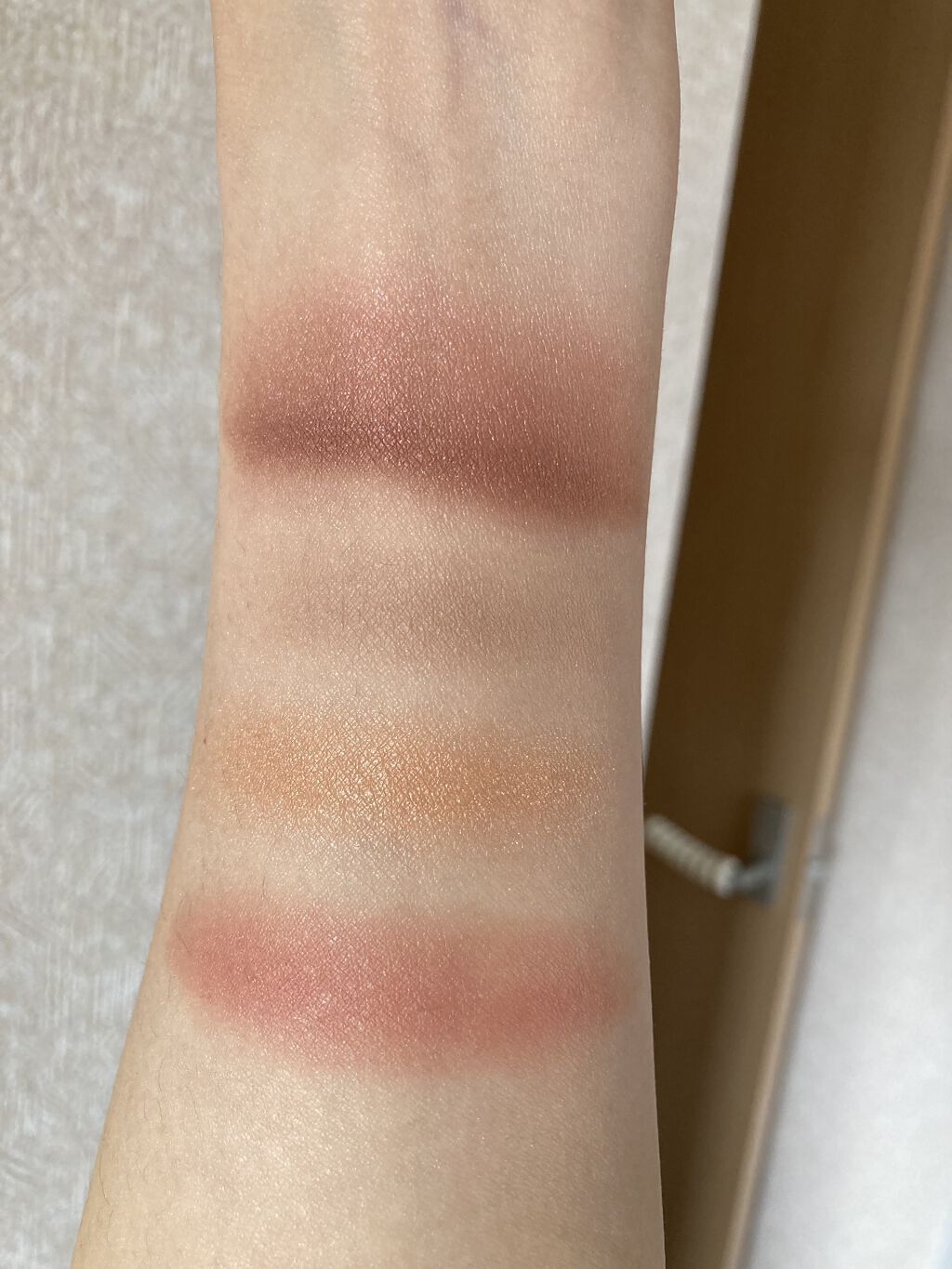 ひと塗りでお洒落な目元へ 指塗りもしやすいのでお直しにピッタリ🫶 ハイライトと一体になったチークでひと塗りで立体感UP🆙 ふんわり色づき濃さの調整がしやすい 目元の明るさ/リップ/チークを足すことで血色感UPで顔色がよく見えるので、この3つでパレットを作りました☺️🙌