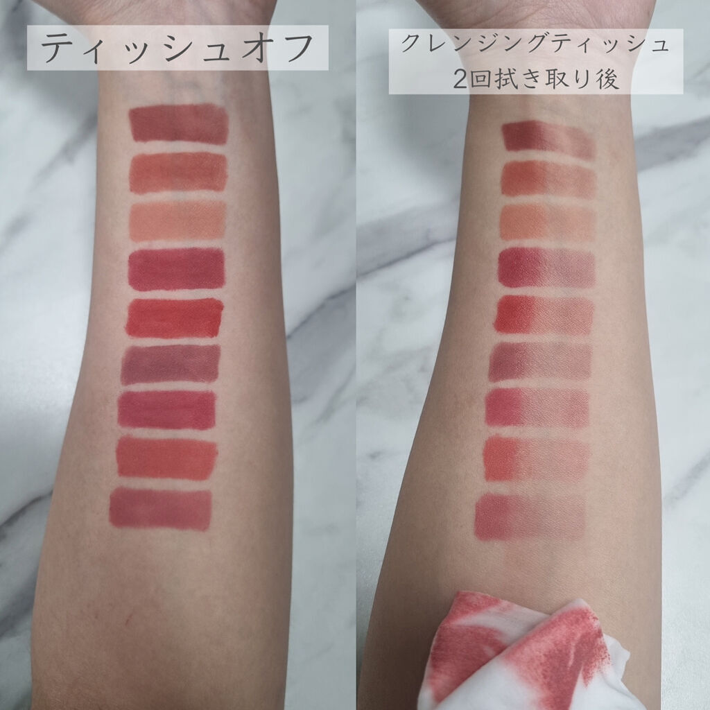 マットリップなのに軽いつけ心地 乾燥せず色持ち長持ち パウダーだからなのか、マットってスキルいるイメージだったけど、不器用な私でも失敗する事なく仕上がるのでお気に入りです☺️ 内側に塗ってグラデもいいし、塗り重ねてフルリップでしっかり発色するも良し👍頬にポンポン指で広ければチークにもなるし多様に使えます🥺 プライマー成分が唇の間のシワを消して、パウダーを塗ったようにサラッとした仕上がりになるのが魅力。