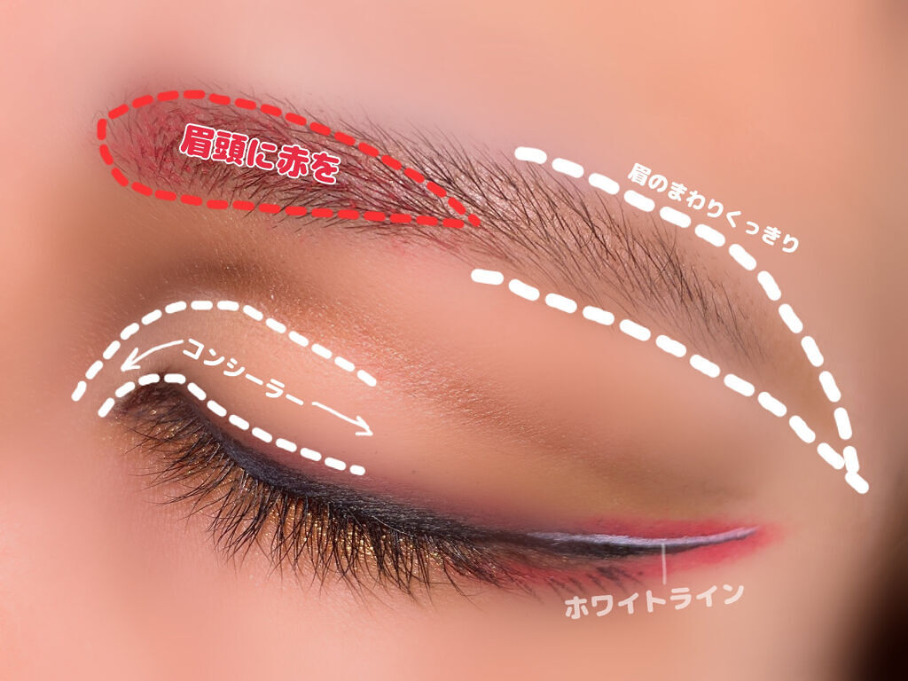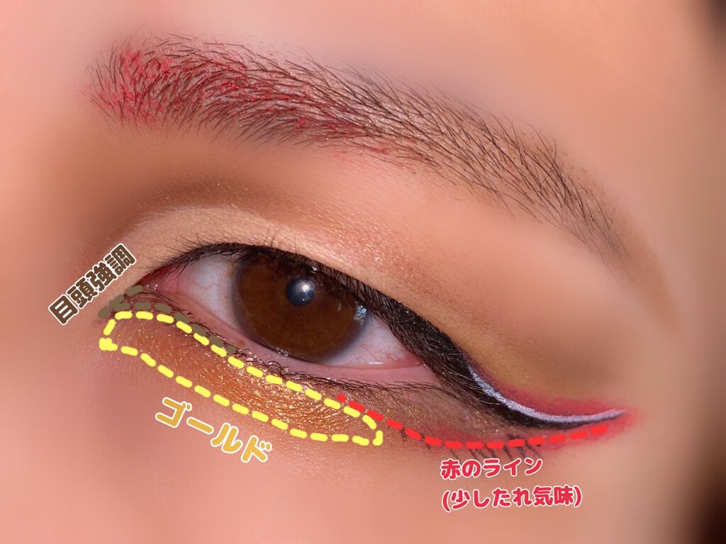 囲み目たぬき顔アイメイク○ヴィセアヴァンシングルアイカラー023REDBRICK目の周りを囲む。○リンメルプリズムクリームアイカラー016目尻側を囲む。(濃いめ)アイライナーを少し垂れ目気味にひく。○theSAEMカバーパーフェクトチップコン...
