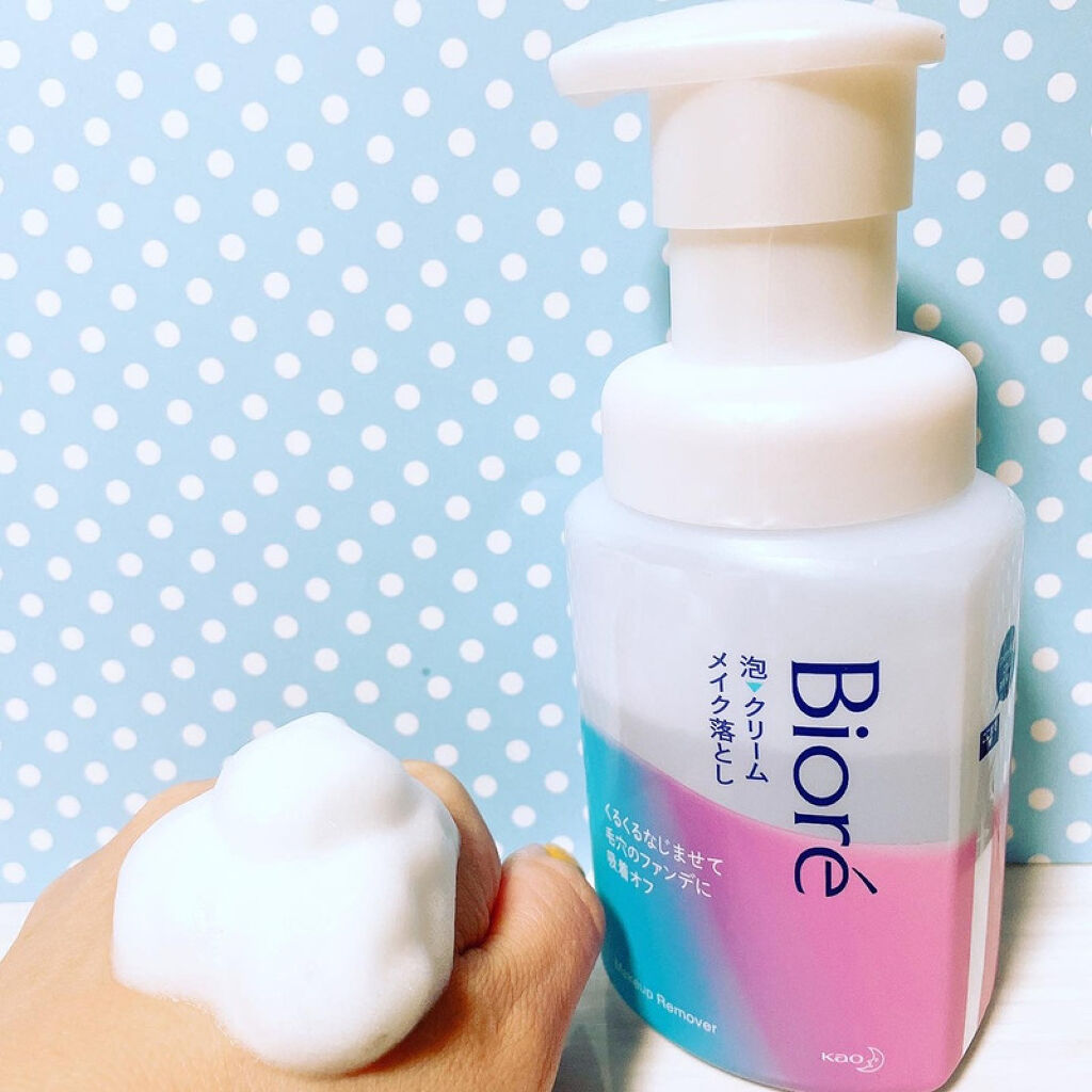 くるくるなじませて落とす。ビオレの泡クリームメイク落とし同じビオレのメイクも落とせる泡洗顔を使っていましたが、こちらに変えて試してみました。プッシュするだけで泡で出てくるから泡立て不要。ヘタレない泡で優しくくるくるすると、しっかりファンデ...