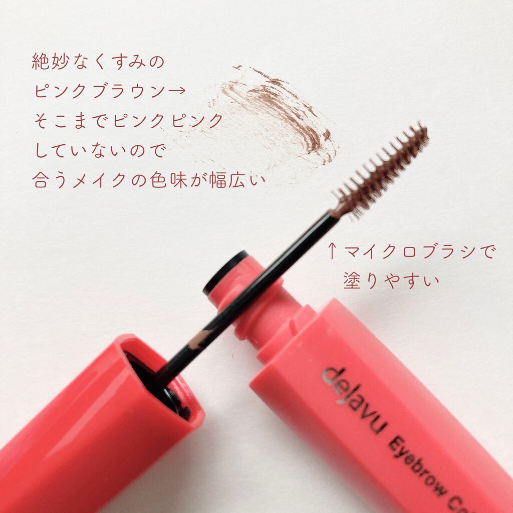 - \\25年3月定番新色モカグレージュ発売// 「フィルム眉カラー」なら眉の印象を自然にやわらげ、ふんわり質感の垢抜け眉に! 1.塗りやすい極小ブラシ ・ 先端直径3mmで、地肌に液がつきにくく根元から色づける ・余分な液がつかない設計で、ティッシュオフ不要 2.眉専用フィルム液 ・眉毛1本1本にキレイに色付き、自眉の黒さをやわらげる ・タバになったり、パリッと固まったりせず、まるで自眉のような仕上がり ・皮脂・汗・こすれに強いのにお湯で簡単オフ (※2025年9月以降、商品パッケージをリニューアル。) デジャヴュ アイブロウカラー