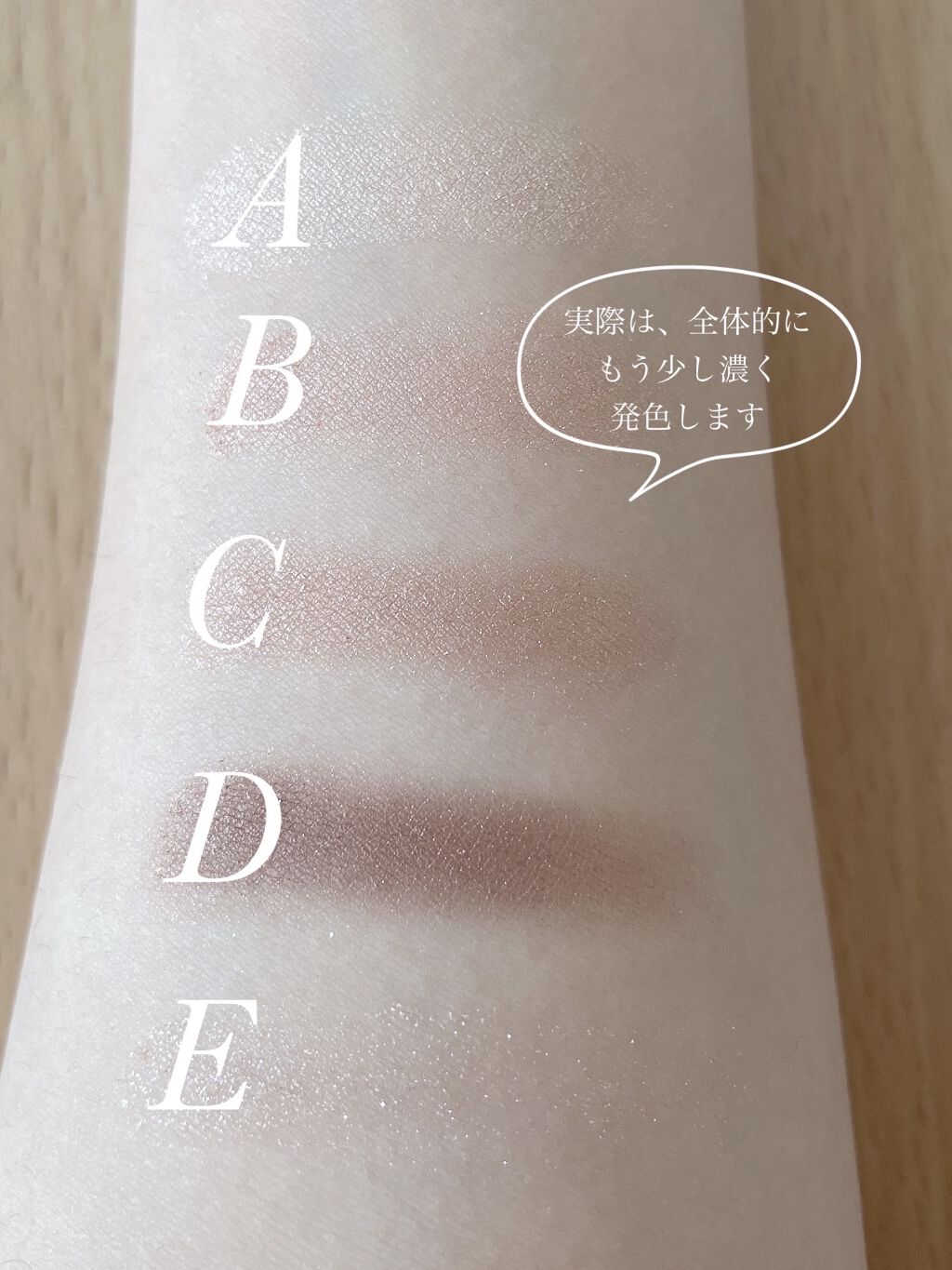- 1枚のパレットで2つのスタイルが完成! 5色の欲ばりアイシャドウ♥ メインカラーを選んで2つのスタイルが楽しめる! A→B→D でスタイル1 A→C→D でスタイル2 繊細な粉質が、しっとりとまぶたに密着して色落ちを防ぎます。 透明感のあるキラうるトッピングジュエル(繊細ラメ)は、気分によってトッピング!