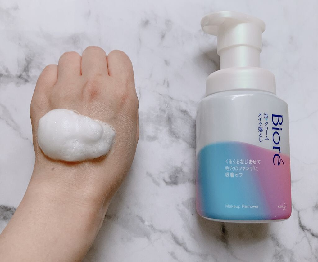 くるくるなじませて落とす。ビオレの泡クリームメイク落とし同じビオレのメイクも落とせる泡洗顔を使っていましたが、こちらに変えて試してみました。プッシュするだけで泡で出てくるから泡立て不要。ヘタレない泡で優しくくるくるすると、しっかりファンデ...
