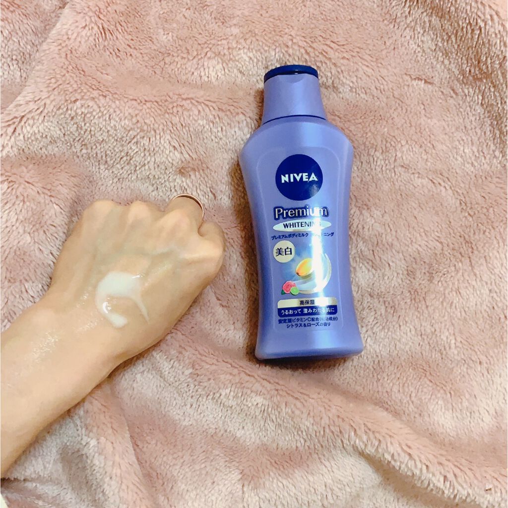 こちらは、弾むような肌に整えてくれるように作られている高保湿ボディミルクです! うるおいが角層のすみずみまで巡り、上質なつやの走る肌に作られています✨ 高保湿なのに軽やかな使い心地も魅力的だなと思います。 商品名にホワイトニングと書いてあるように「安定型ビタミンC」美白成分が配合されています✌️♡ プレミアムグロウライン成分(保湿成分)*1や、ボタニカルクリア成分(保湿成分)も配合されているのも素敵だなと思います。 上質で爽やかなシトラス&ローズの香りも個人的には好きな香りでした👍♡ ニベアさんには、今回紹介した、「プレミアムボディミルク ホワイトニング」以外にも、様々な商品があるので、自分の好きな香りや自分の肌悩みに合うものを探せるのも楽しいな〜と思いました✨ ドラコスなので、気軽に購入できるのも医薬部外品であるところも魅力的だなと思います♪