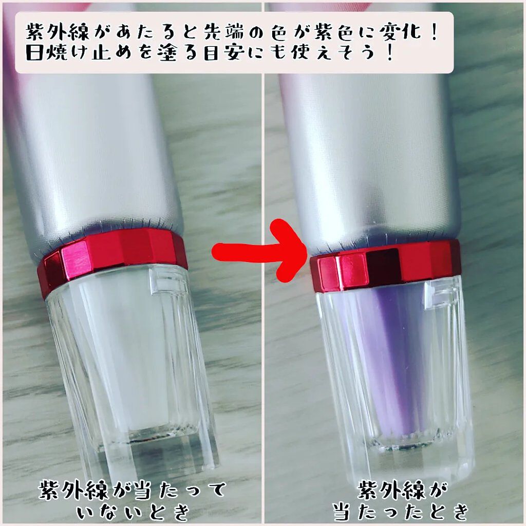 SPF50+PA++++と紫外線カット効果が高いので、しっかりと日焼け対策したい方におすすめのアイテムです😍 テクスチャーは伸びが良くて、さらっとした塗り心地! キャップ部分がUVセンサーになっていて、紫外線にあたると紫色に変化する面白い工夫も💜 1品で3役の機能があるから、忙しい朝にピッタリ☀️
