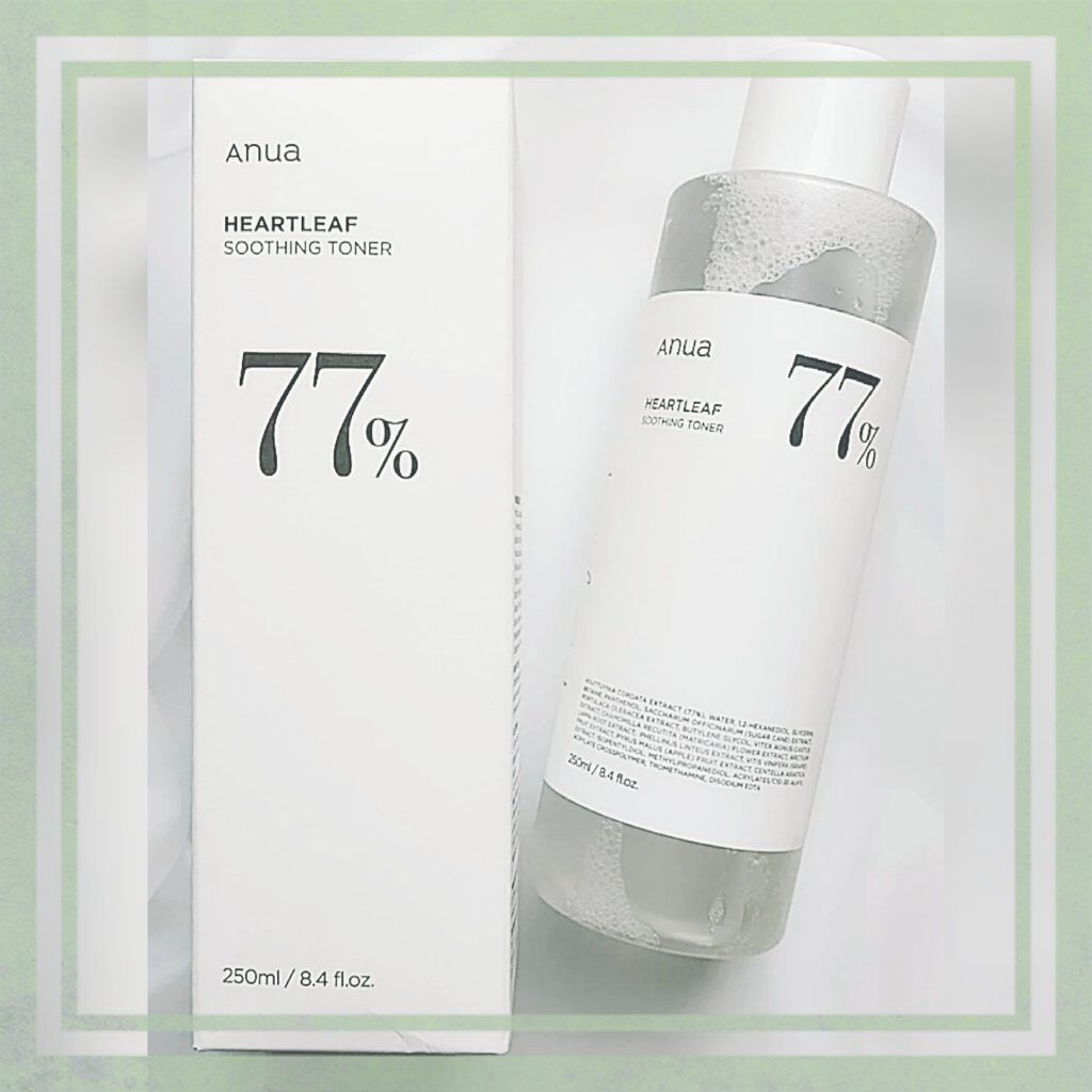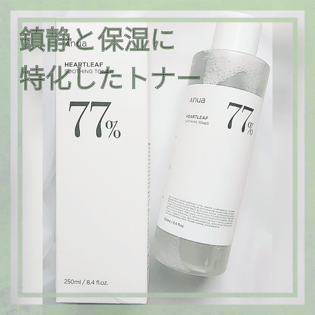ボトルにでっかく書いてある77はドクダミソウエキスが配合されている割合のこと! ドクダミソウエキスには、抗炎症作用(炎症や赤みを抑える)や抗酸化作用(シミやシワを防ぐ)などが含まれている! でもサラッとしていて使いやすいから肌荒れしてない調子の良い日に使ってる!