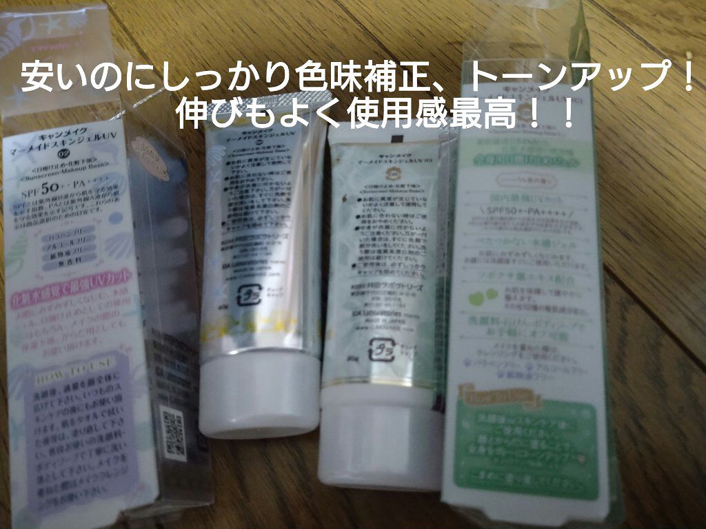 キャンメイクマーメイドスキンジェルUVC03 ピュアパープルLIPS購入品日焼け止めジェルナイアシンアミド配合美容液84%配合SPF50PA++++UVカットも良き良き♪洗顔後orスキンケア後に使用できる所がいいねぇ。。。化粧下地効果があるら...