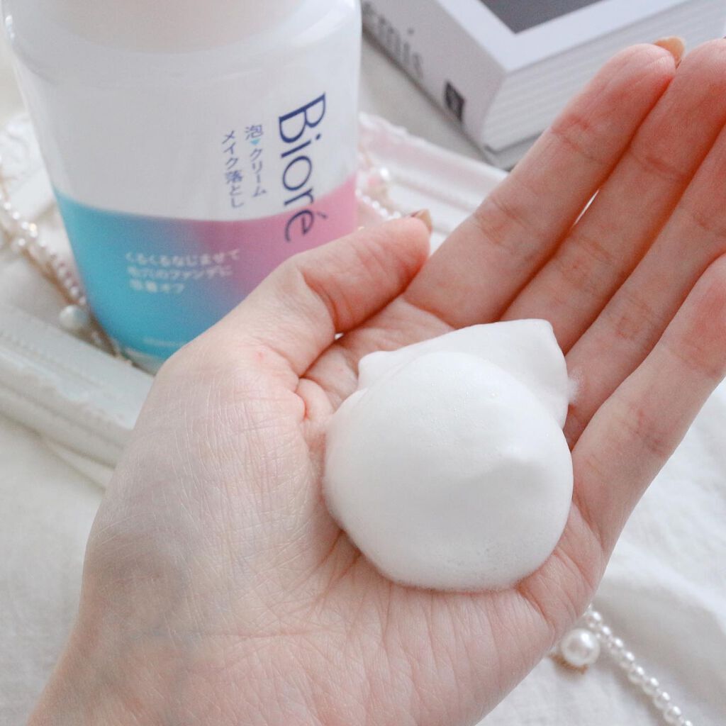 くるくるなじませて落とす。ビオレの泡クリームメイク落とし同じビオレのメイクも落とせる泡洗顔を使っていましたが、こちらに変えて試してみました。プッシュするだけで泡で出てくるから泡立て不要。ヘタレない泡で優しくくるくるすると、しっかりファンデ...
