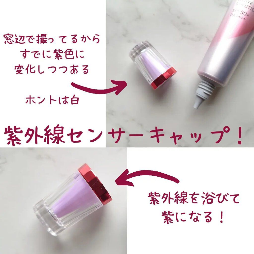 光をコントロールして肌を美しく、ワントーン明るい印象に仕上げる。 肌の奥まで侵入する「Deep紫外線」までしっかりカットするので、メイクアップ後も高いUVケアを実現。 紫外線にあたるとキャップが紫色に変化する事を知りました!自宅でも試したのですが、屋内の窓際でも鮮やかな紫に!!