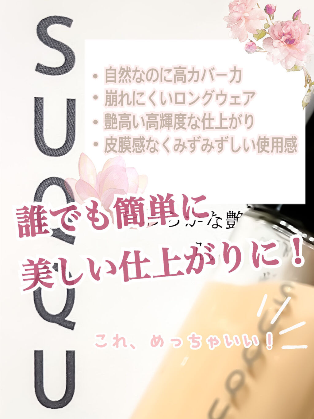 - SUQQUファンデーション史上最高のなめらかさで、艶高く、長く続く、高輝度肌へ。 とろりとやわらかな艶の膜で肌を包み、自然なのにハイカバレッジ。 ヨレやくずれを気にすることなく、肌との一体感を実感できます。 仕上がりはみずみずしく、艶高い、大人のための高輝度肌。