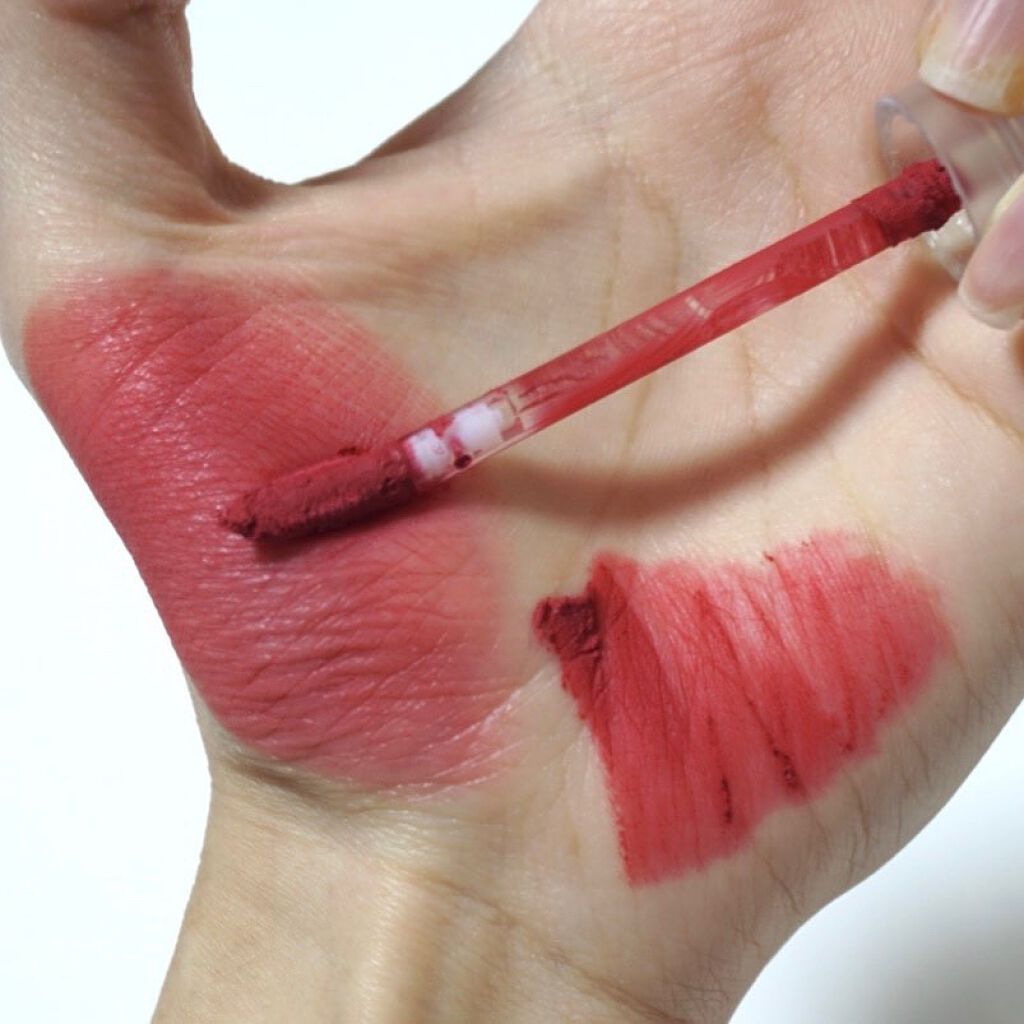 キラッとした濡れツヤ感のある仕上がりで、角度を変えるとキラキラしてとても綺麗です🙏✨ ウォータリーにとろみも混じったテクスチャー。一度につく量が少量で、薄ーくしかつかないため唇に負担を感じません✨ 発色は1度塗りでもかなりきちんとカラーがついてくれます!重ねるほど発色もほんのりカラーの深みが出る印象です🙌 ティッシュオフしてみたところカラーの固定力は結構高いイメージでしたが、食事をするとほんのりと色味が残るかなといった印象です。 乾燥はしにくいですが、ベースにリップクリームなど何もぬらずにつけた時に若干の乾燥を感じたので、きちんと保湿してからつけるのがベストかと思います💡 二等辺三角形のやや平ためのアプリケーター。先端がとんがっていて唇のラインに当てやすいです🌟 りんごのヨーグルトみたいな爽やかで甘い香りがします🍎唇につけている瞬間は香りますが、生活している分には味がしたり気になることはありません🙌