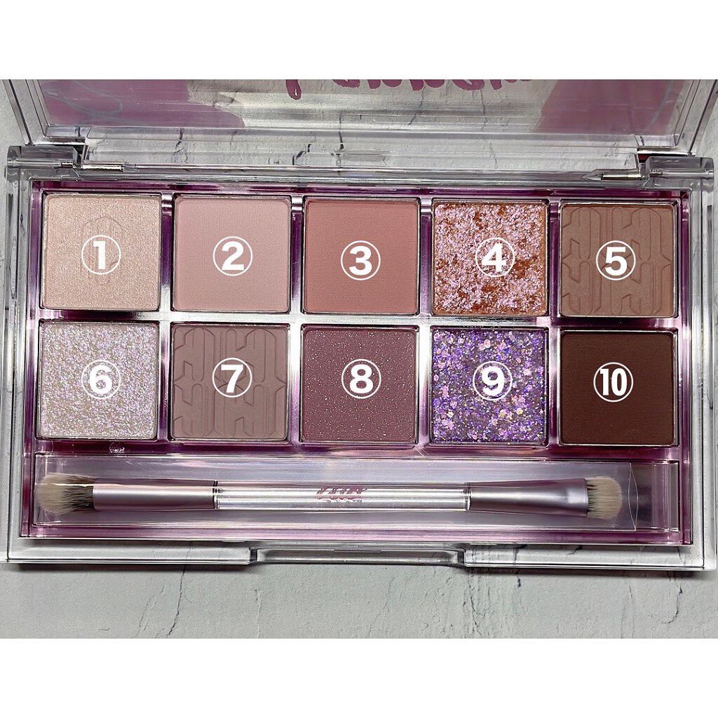 - ひとつのパレットにマット、シマー、グリッターなど多様な質感を贅沢に使用。塗る順序やカラーの組み合わせを変えるだけでデイリーメイクにも、特別な日のお出かけメイクにもできる優れもの。また粉飛びせず、まぶたにしっかり密着します。