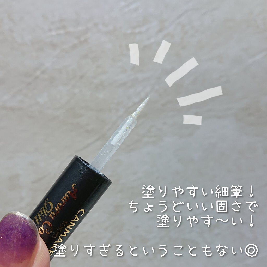 高輝度ラメたっぷりのカラフルグリッター ラメの粒子サイズを大きくしすぎないことで、悪目立ちしない絶妙な輝きに仕上げた 密着力も良いし、ギラギラしすぎない🙆🏻♀️ やわらかく使い勝手の良い極細筆で、狙ったところにラメをオン