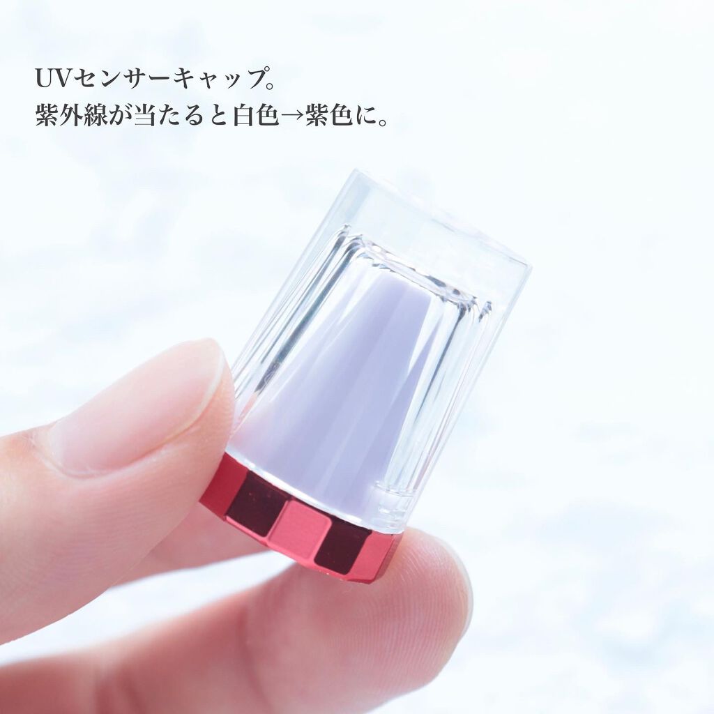 アスタキサンチン 活性酸素を消去して、物質が酸化するのを抑制する高い抗酸化力がある キャップがUVセンサーになっていて、紫外線に反応してキャップが紫色に変化します。