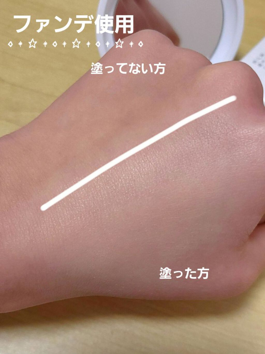 - マイカ、シリカ、酸化チタン、イソノナン酸イソトリデシル、トリエチルヘキサノイン、ヘキサ(ヒドロキシステアリン酸/ステアリン酸/ロジン酸)ジペンタエリスリチル、ジメチコン、酸化亜鉛、エチルヘキシルグリセリン、カプリル酸グリセリル、水酸化Al、ステアリン酸、水、BG、トコフェロール 、スクワラン、テトラヘキシルデカン酸アスコルビル、シロキクラゲ多糖体、ツボクサエキス、エタノール、アルミナ、加水分解シルク、ヒアルロン酸Na、ユキノシタエキス、カミツレ花エキス、ヨモギ葉エキス、加水分解コラーゲン、ハトムギ種子エキス、タルク、ハイドロゲンジメチコン、酸化鉄